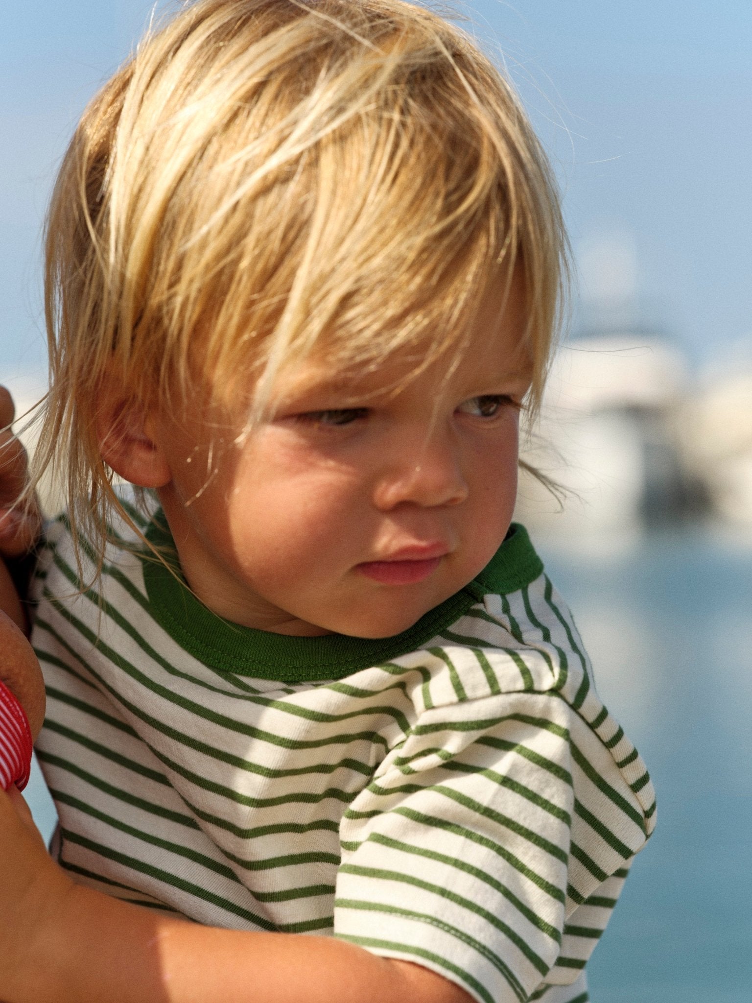 Yarn dyed stripes on our heavyweight cotton jersey with a vintage-style neckband. 90's style for the kids.