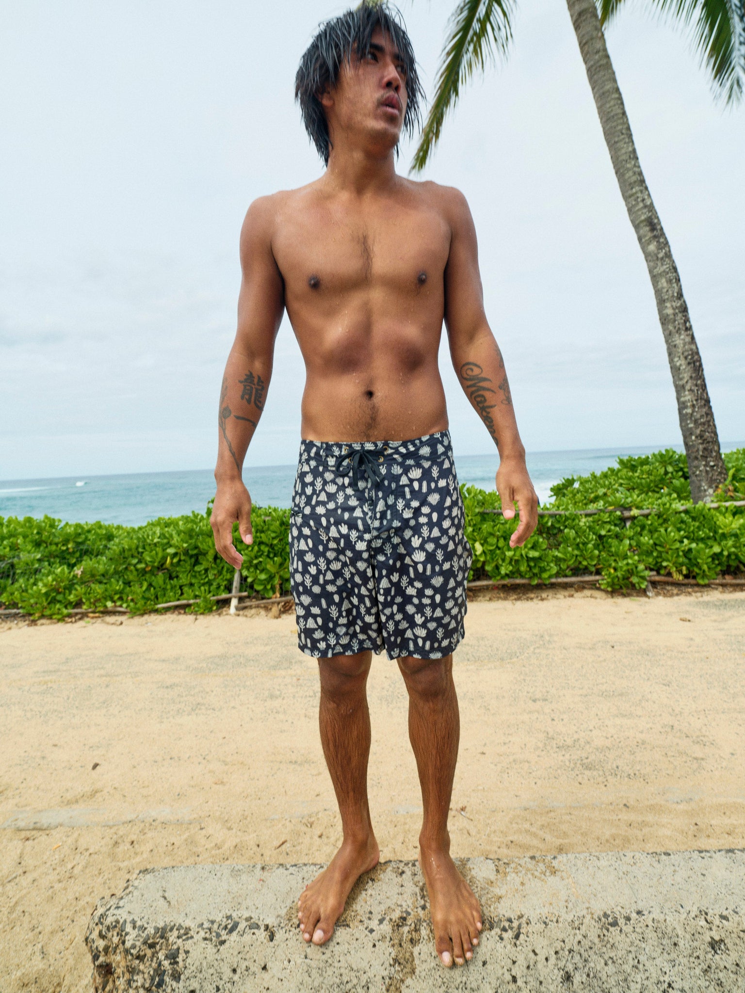 Team rider Trevor Gordon designed these timeless-core boardies for all-day wear when surfing and boating. They feature quick-drying nylon and a zipper side pocket to keep a wallet in when taking the skiff to shore for snacks. Leo is 6' 2" tall with a 32" waist and wearing size 32.