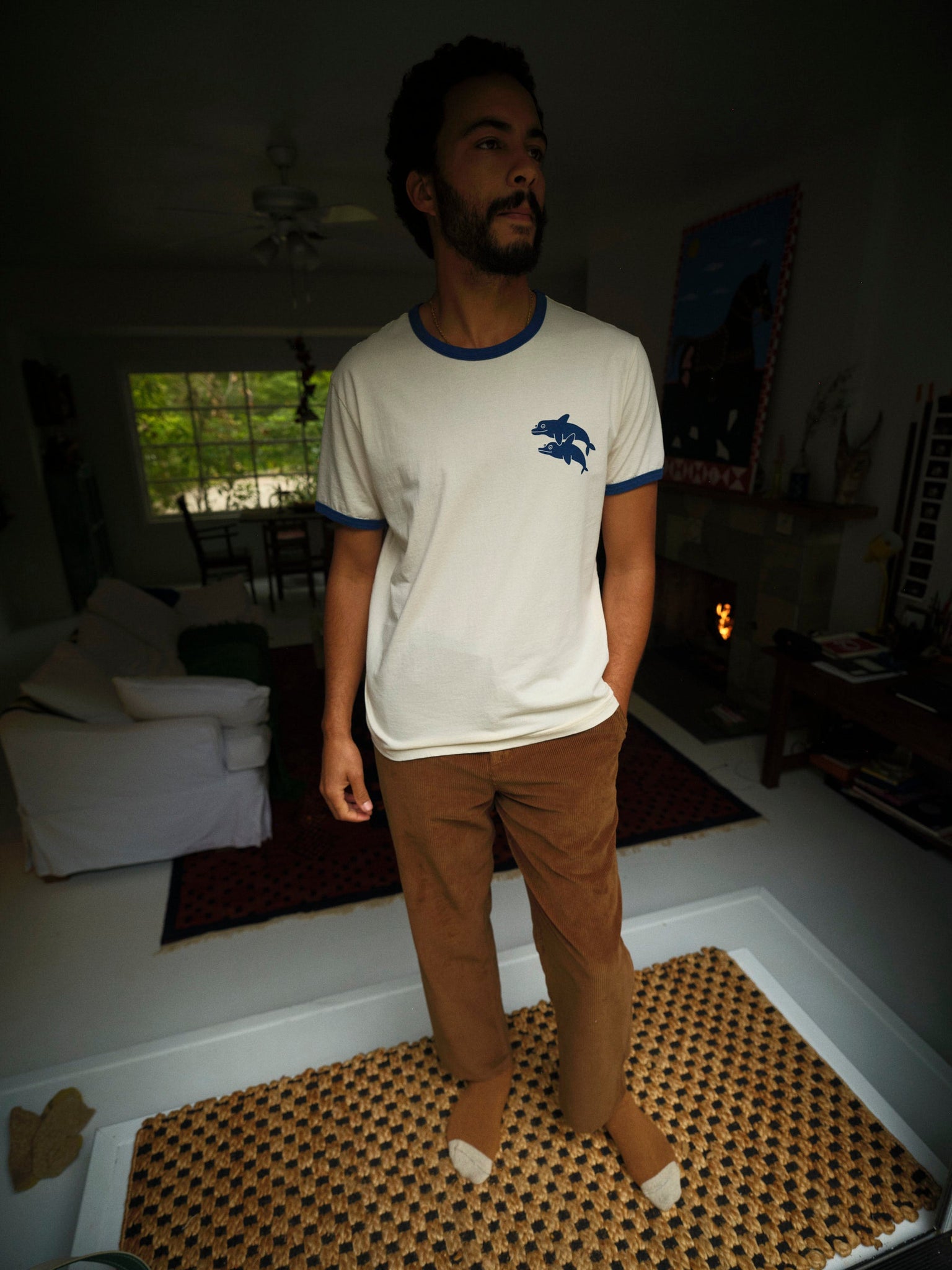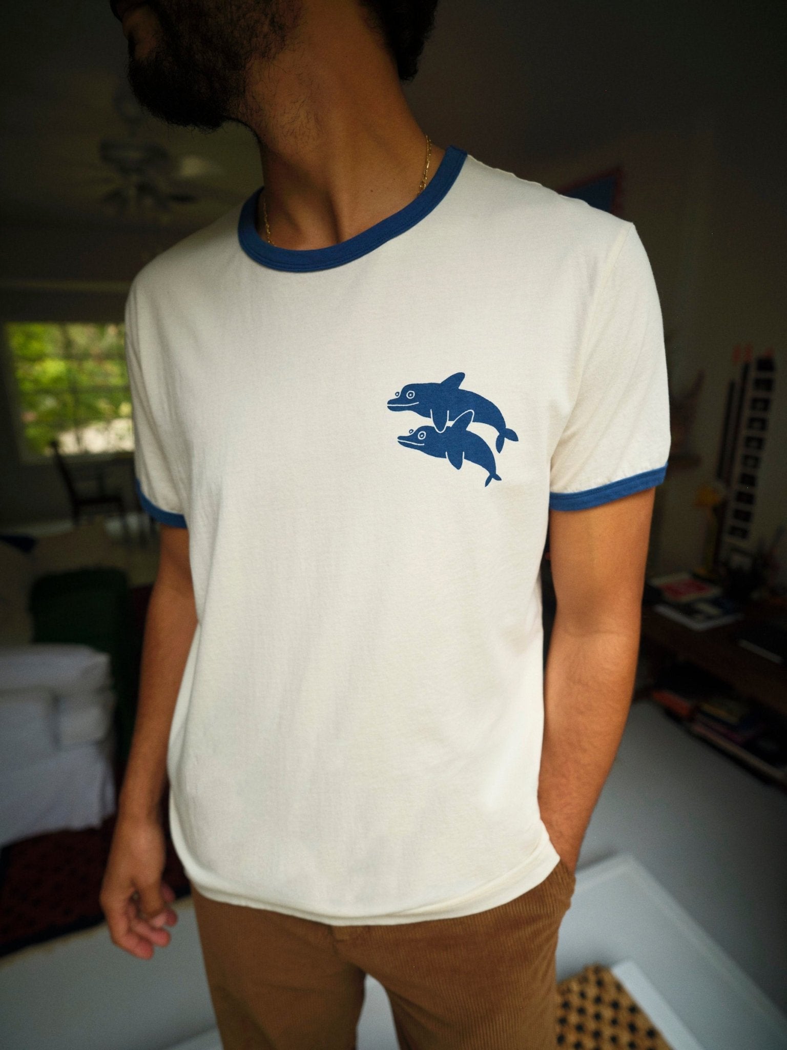 People love dolphins for many reasons, including their intelligence, playfulness, and ability to communicate with humans. Artwork by Nat Russell. Zach is 6'1" and wearing a size L.