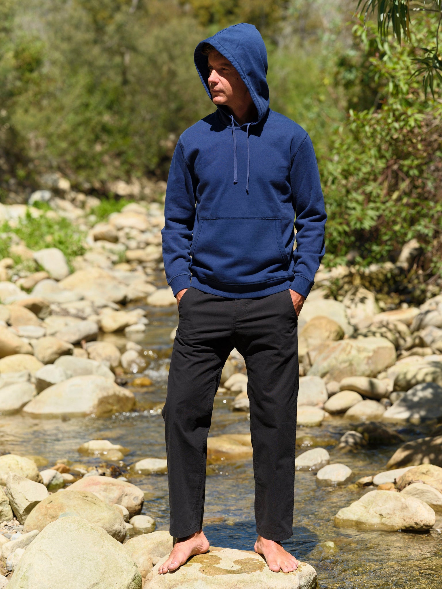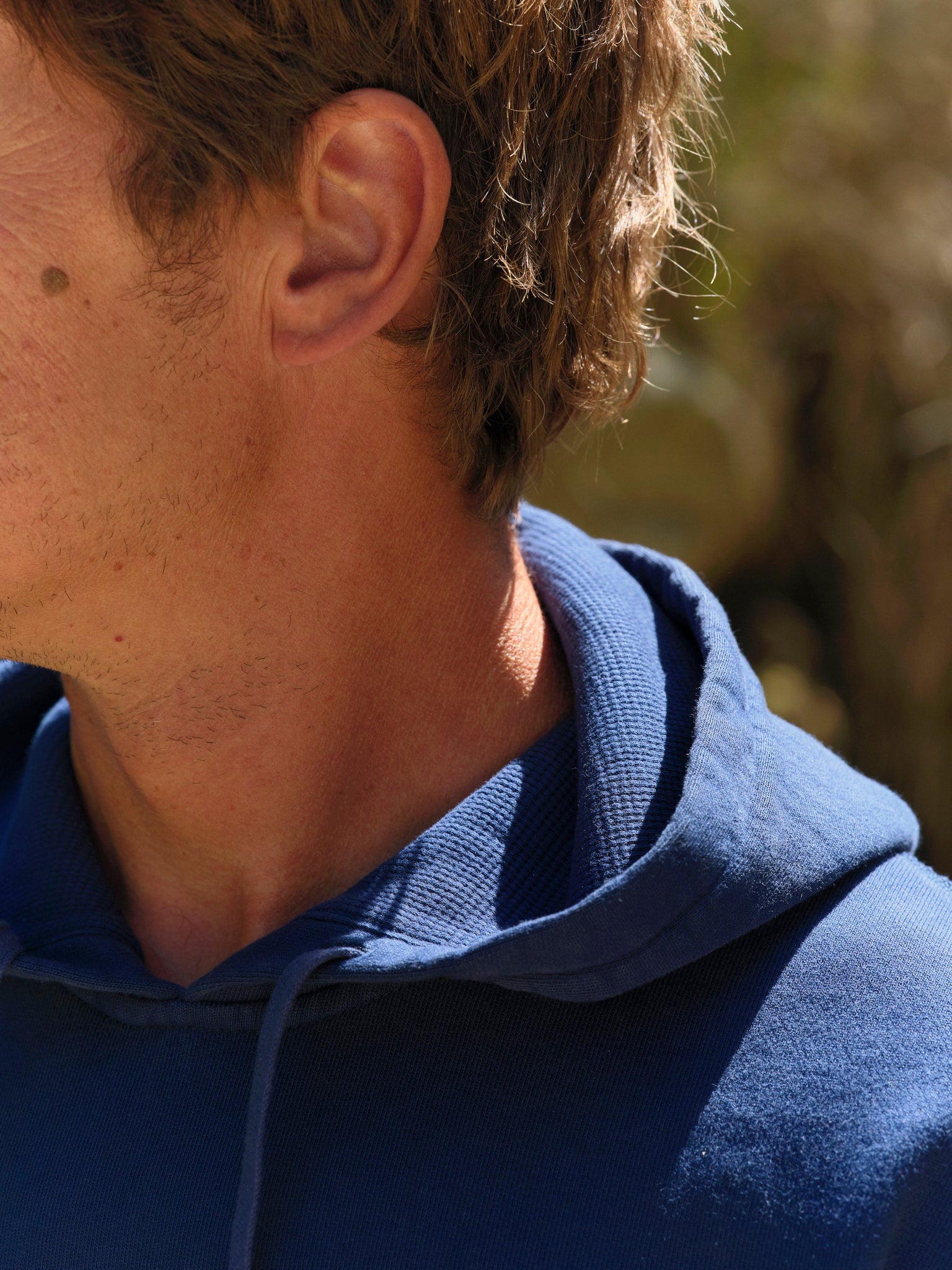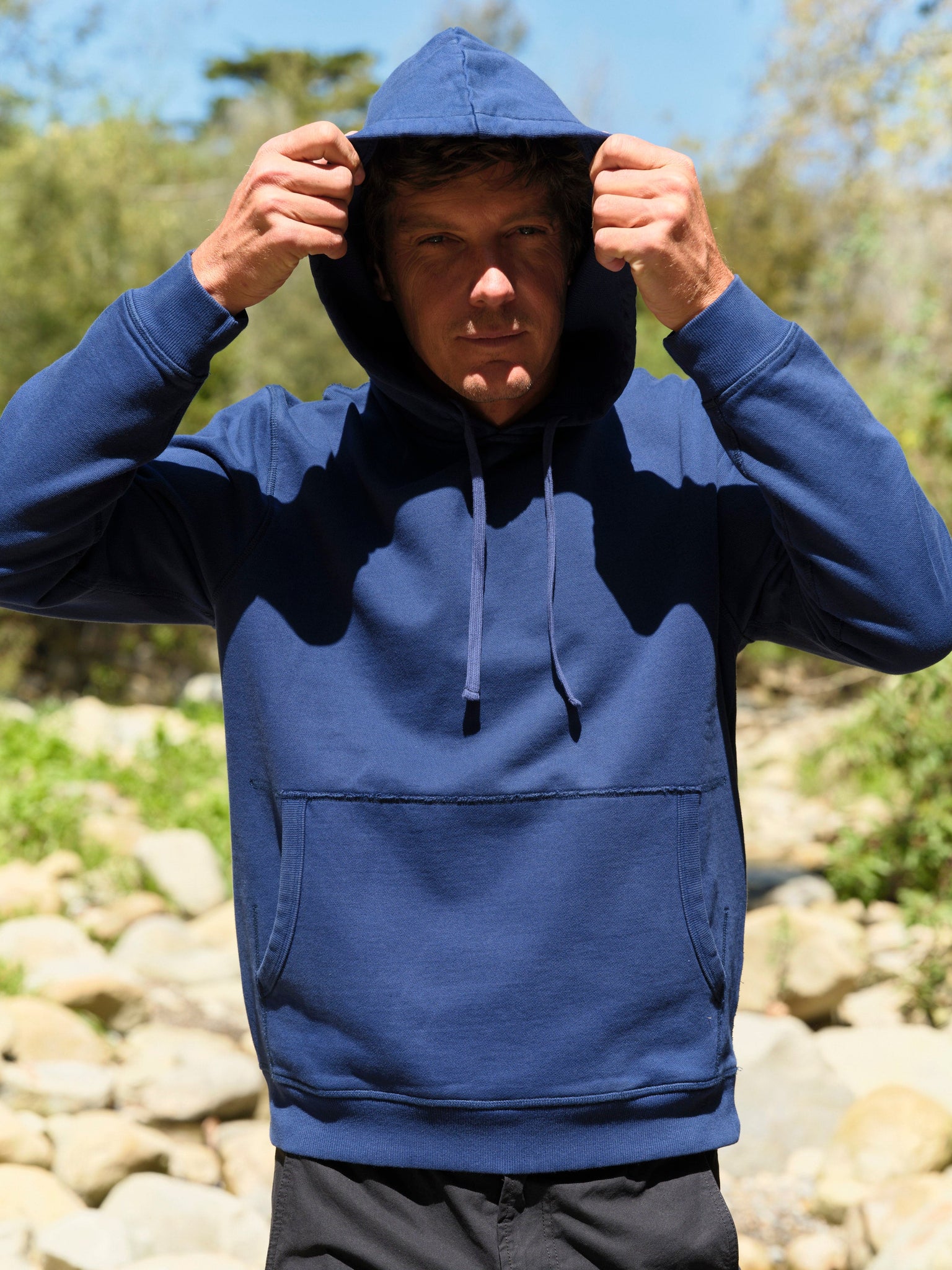Hefty Cotton French Terry that holds up beautifully, and a hood lined with Waffle Jersey to keep you warm. The relaxed fit is comfortable but not oversized.