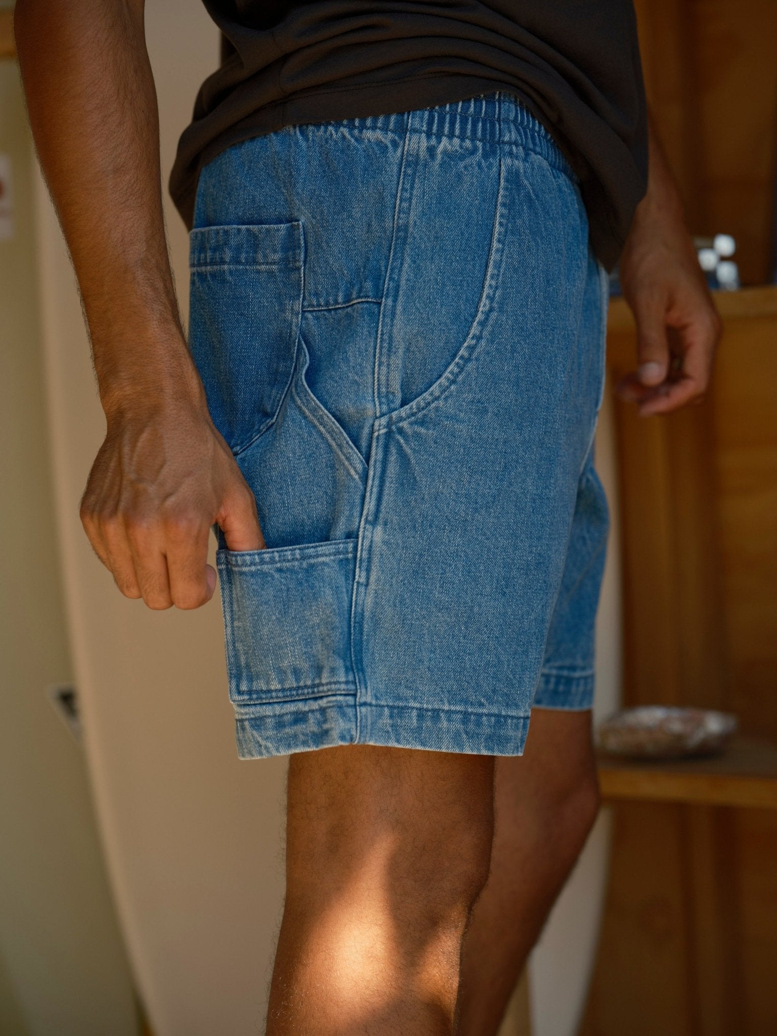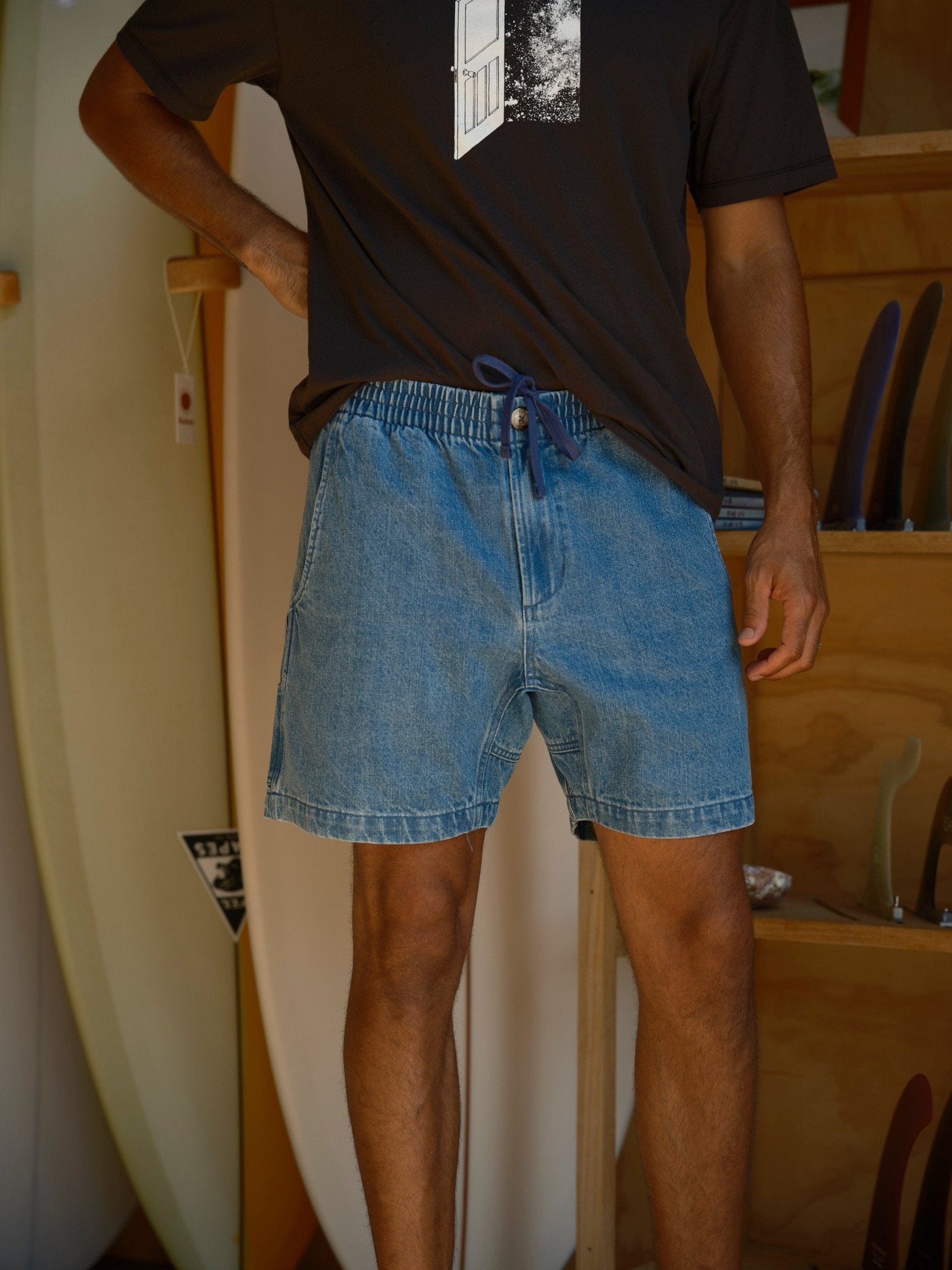 Denim doesn't need to be stiff and uncomfortable. Featuring an elastic waistband and relaxed fit, these shorts made for are live-in comfort.