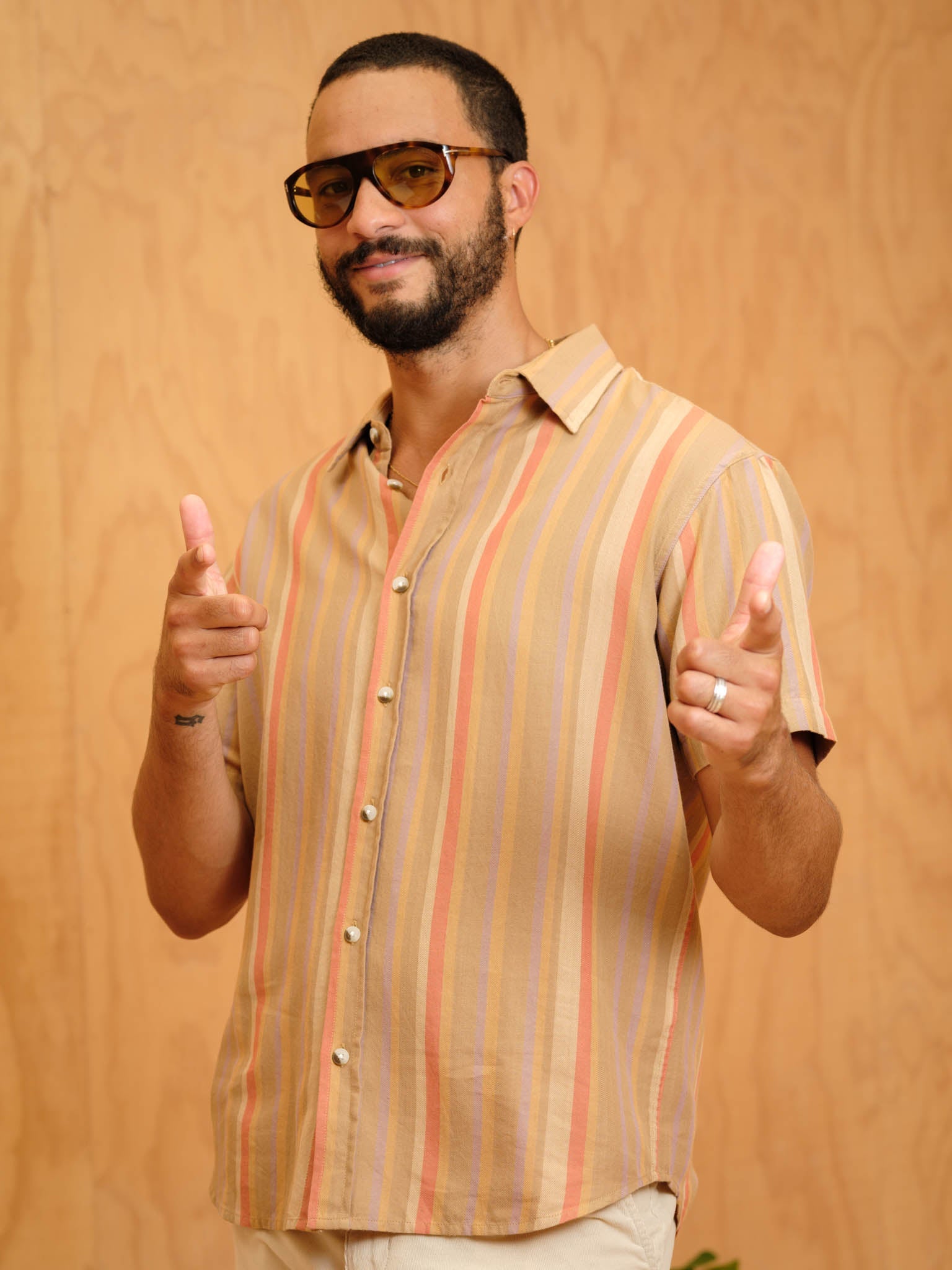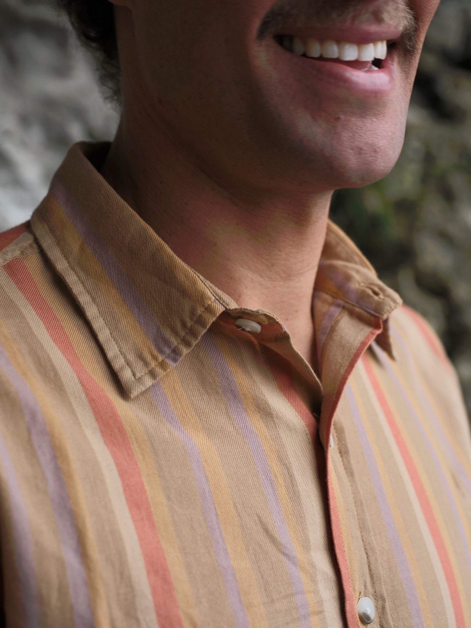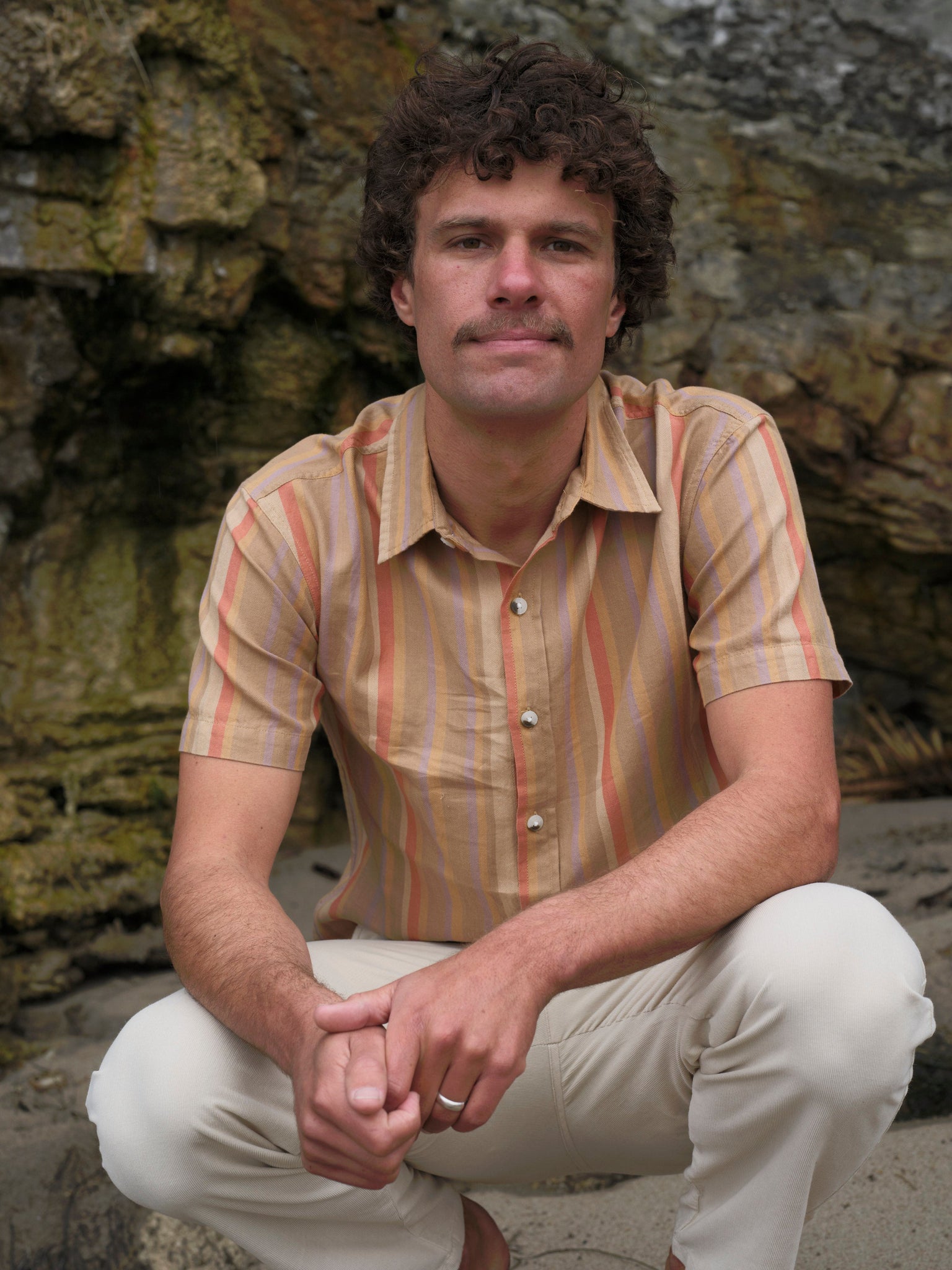 A classic 60's style for the modern man to wear while pleasure boating or barbecuing. Beau is 6' tall and wearing size M. Zach is 6' 1 and wearing size L.