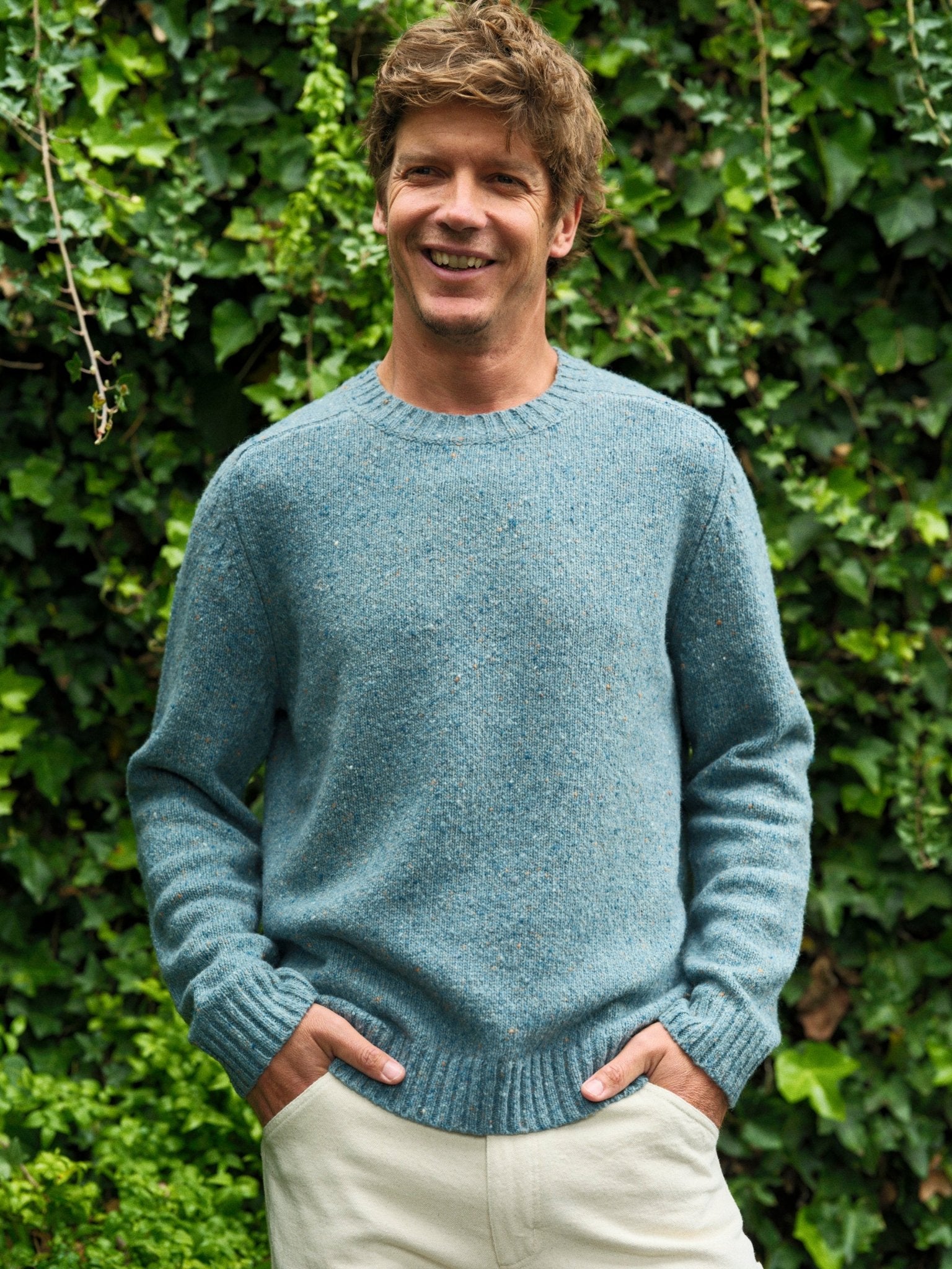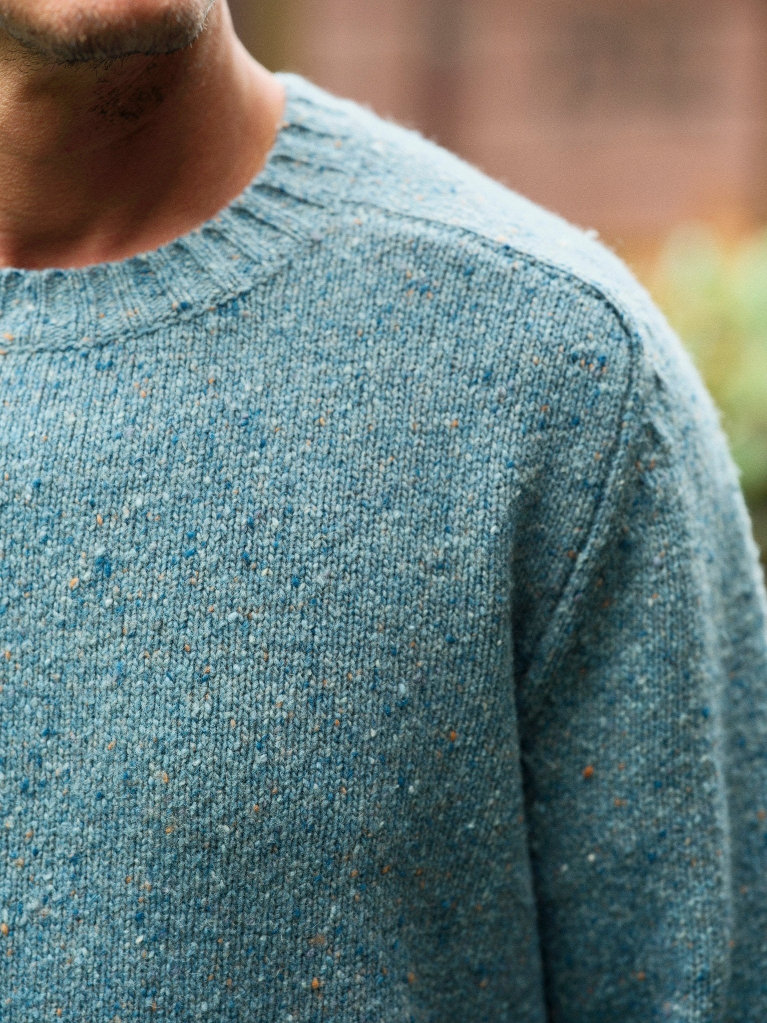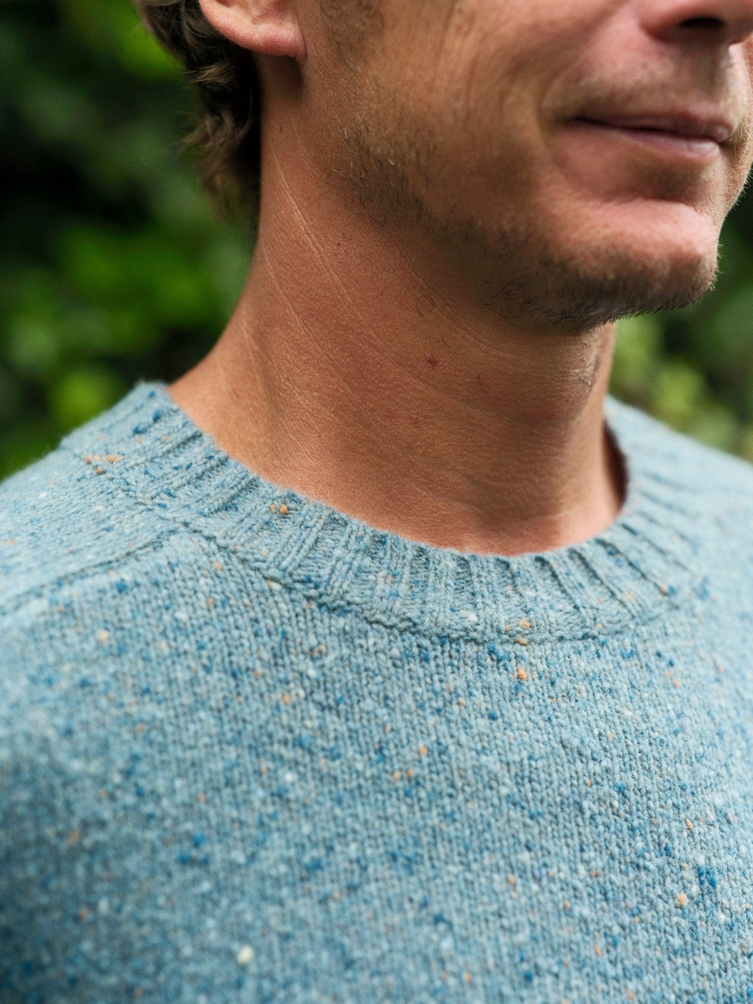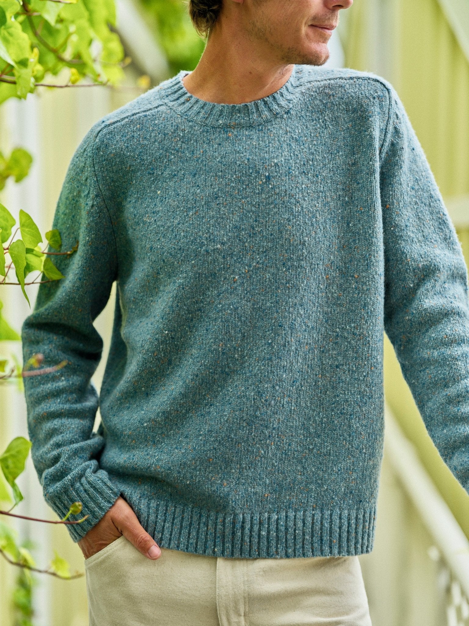 Cozy, comfortable, and warm. The saddle shoulder construction gives this true-to-size style mobility and comfort, and the yarn is a soft Merino Wool blend that holds up well. Limited annual production - when they're gone, they're gone until next year.
