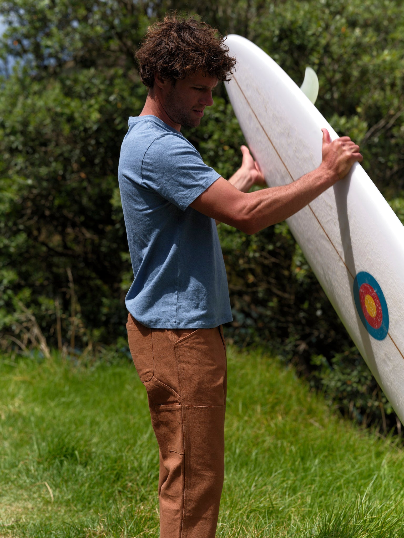 The go-to tee that gets better with every wear. Our signature 55% hemp, 45% cotton jersey blend is garment dyed for instant softness and breathability.