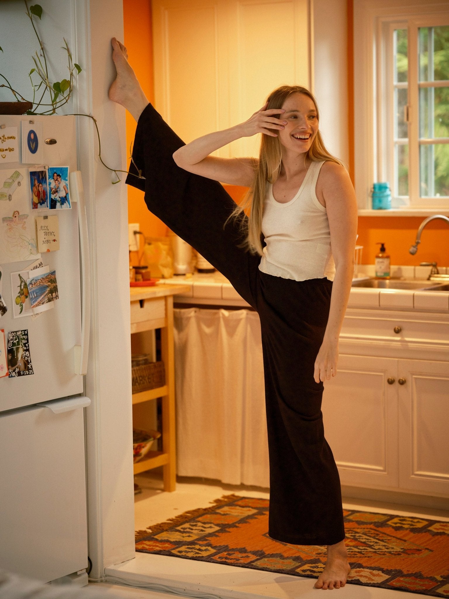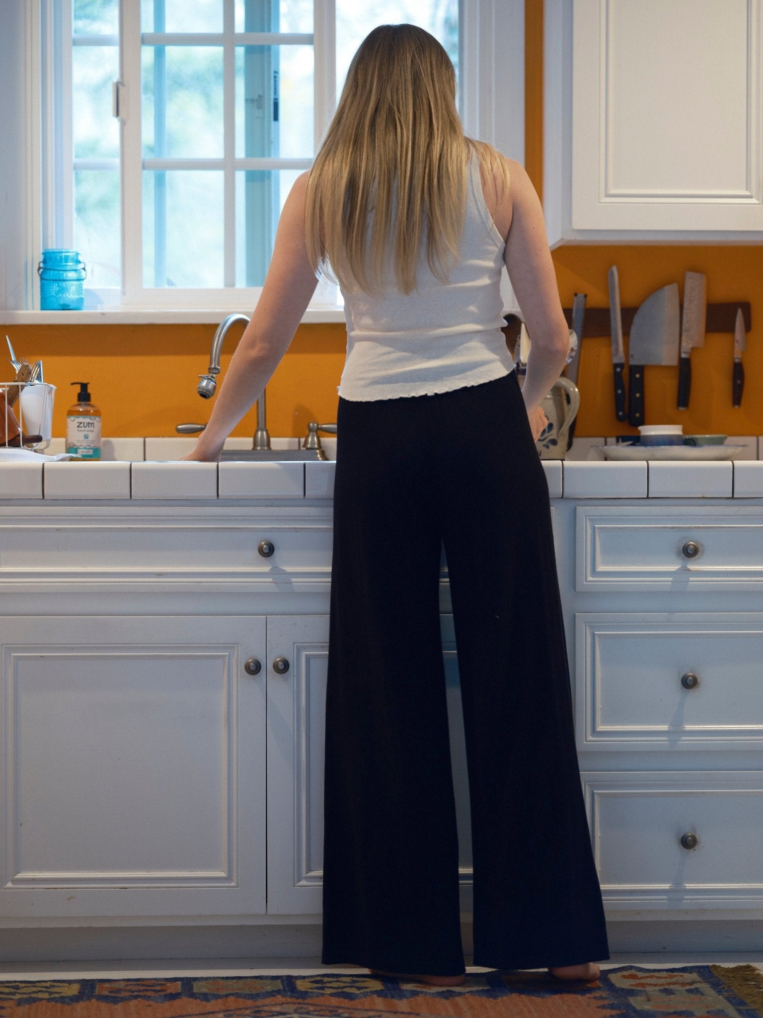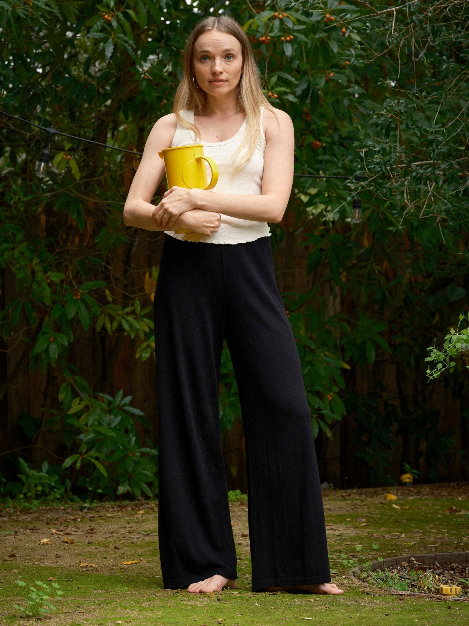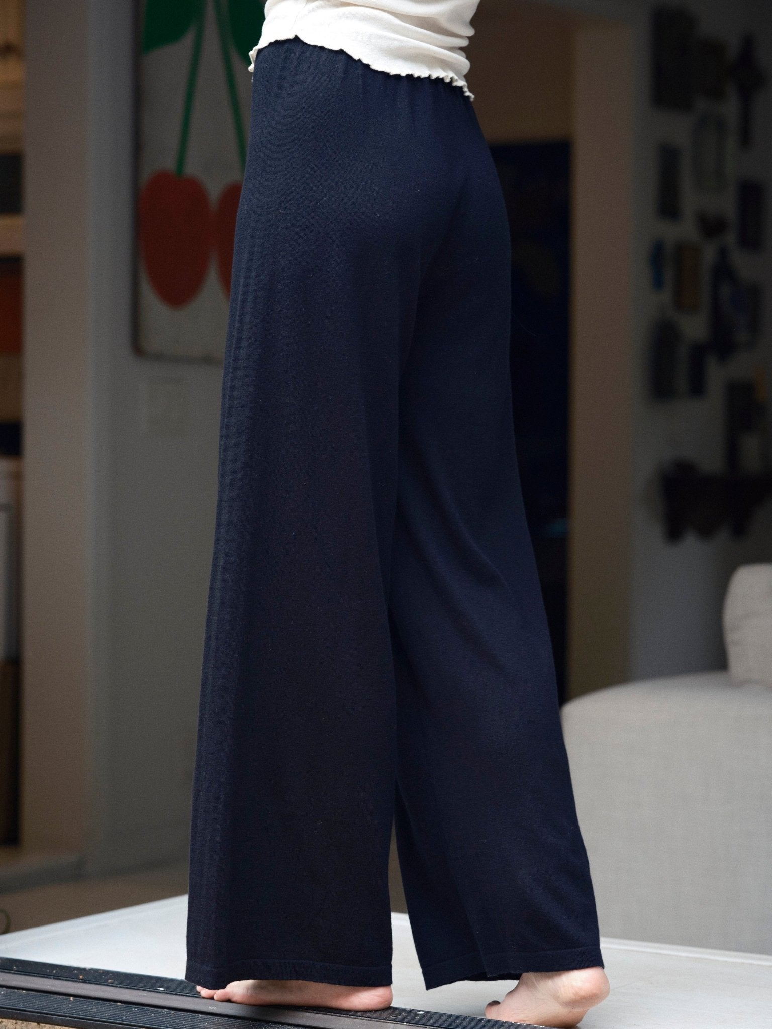 A simple pant for simple pleasures. Our wide-legged Loosey pant is knitted from fine, luxurious cotton-cashmere blended yarn that simply feels like butter. This versatile pant offers an elastic waistband that can be worn high on the waist or low on the hips and can be easily dressed up for an evening out or thrown on to veg around the house. The Loosey Pant is seamlessly knitted with no out-seams or pockets for effortless, uninterrupted comfort.