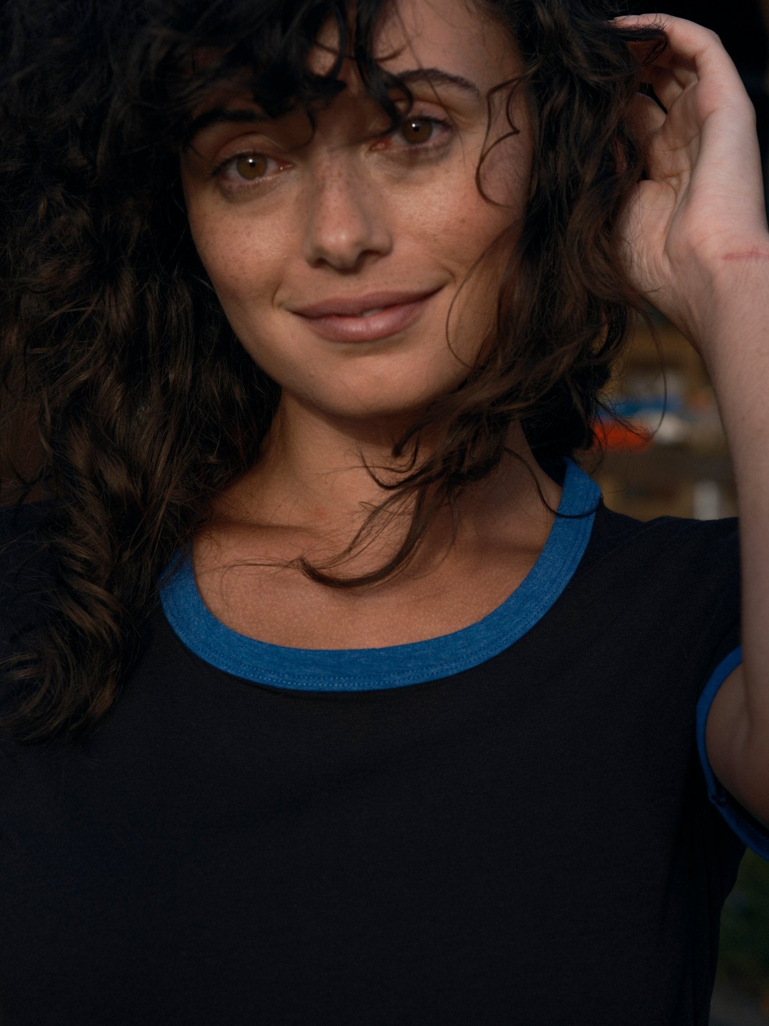Express yourself in this 70s-inspired tee with contrast binding. It has a hint of scoop in the neckline and a relaxed fit.