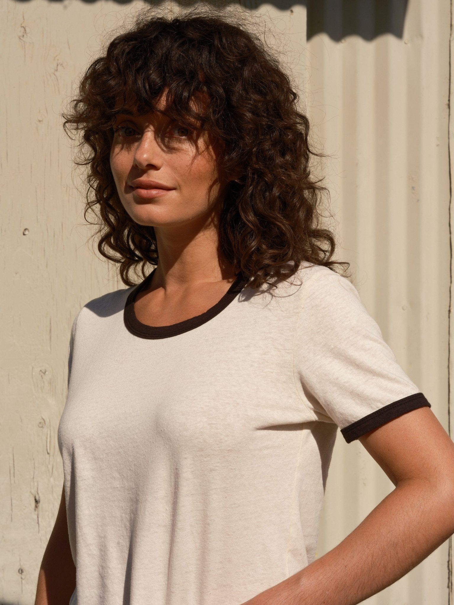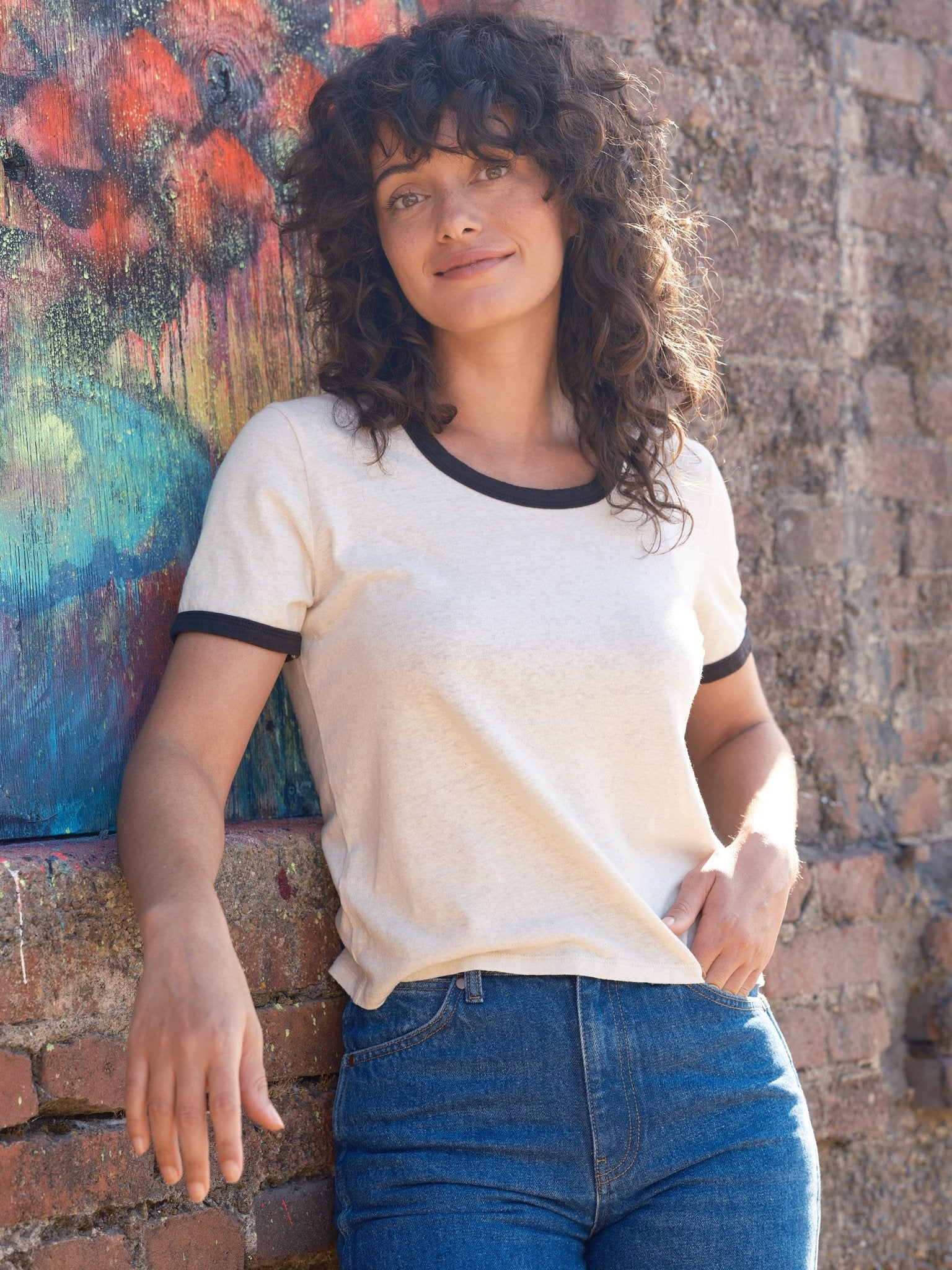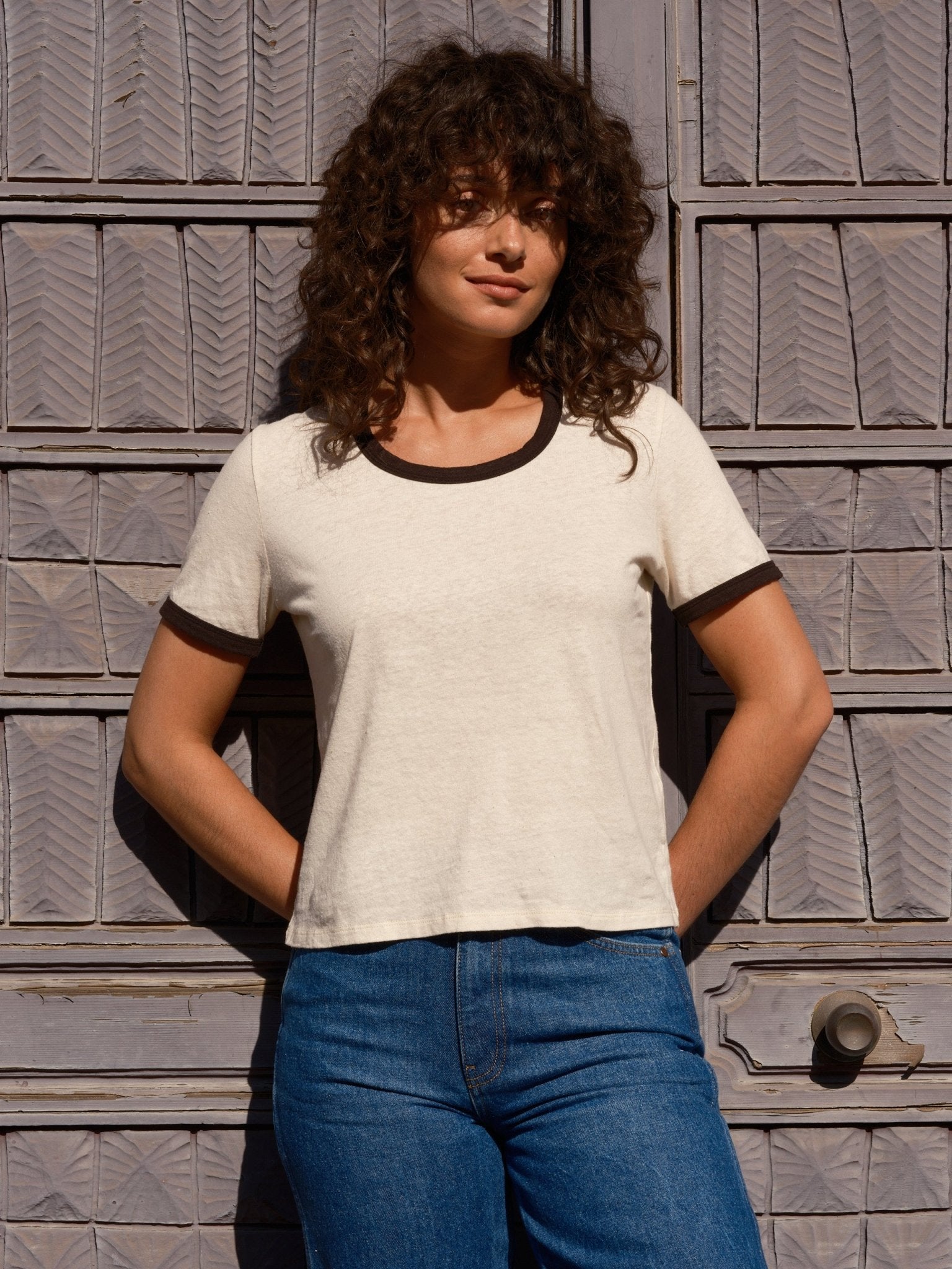 Express yourself in this 70s-inspired tee with contrast binding. The fabric is our natural, unbleached hemp jersey with a contrast binding. It has a hint of scoop in the neckline and a relaxed fit.
