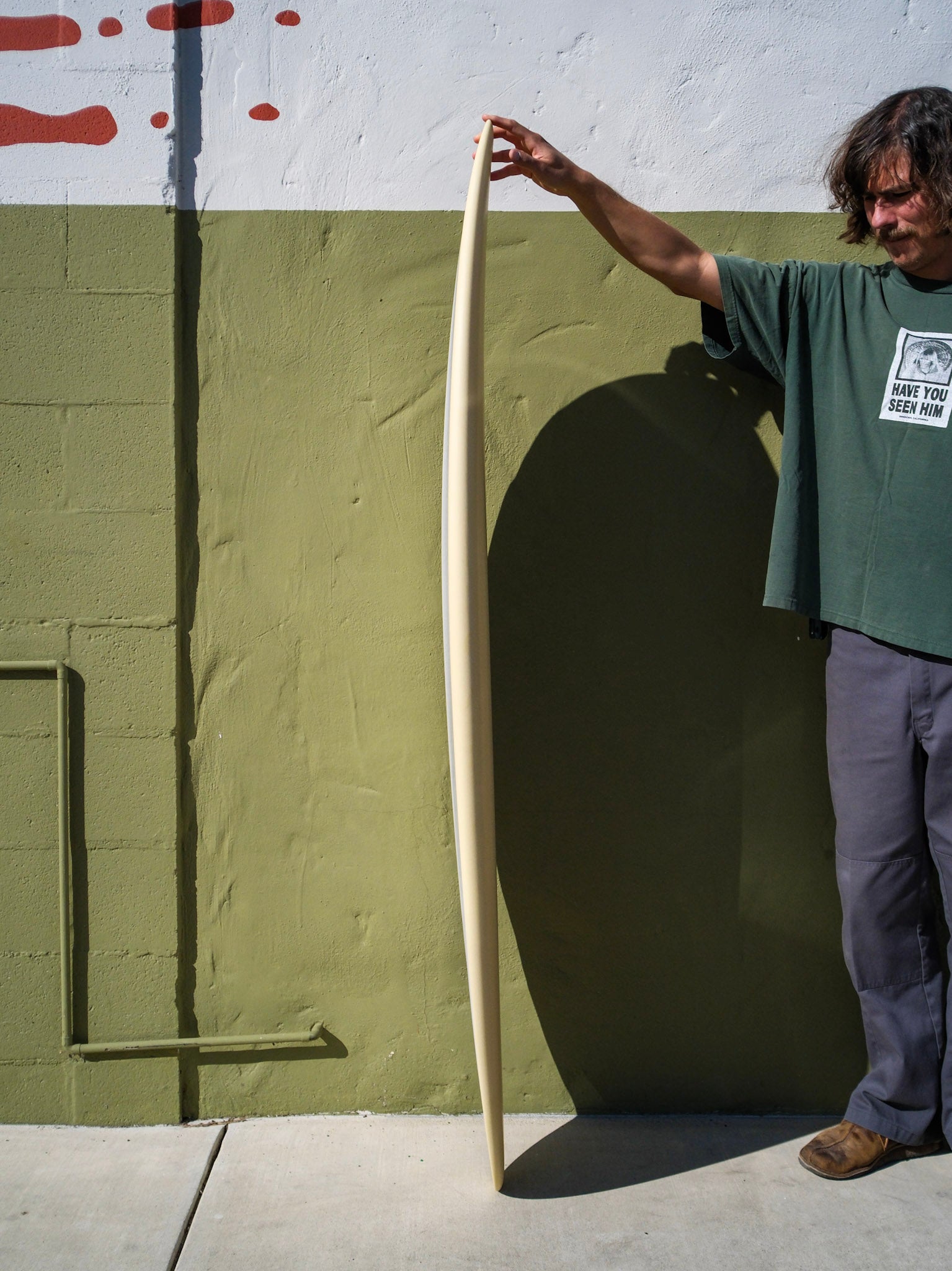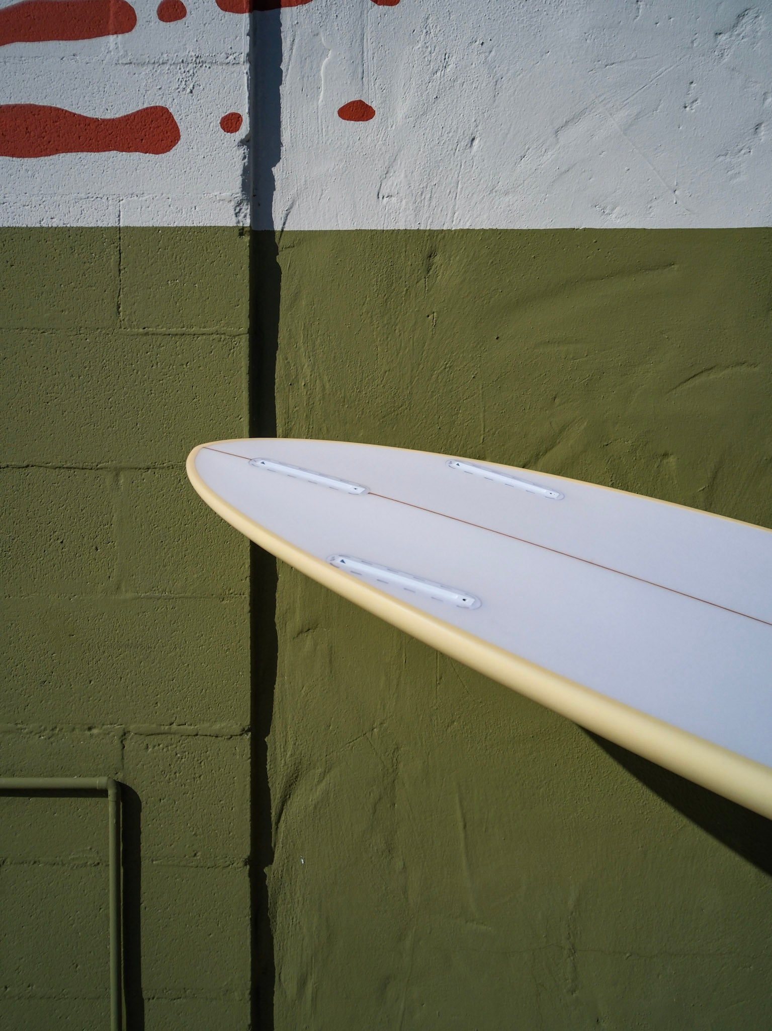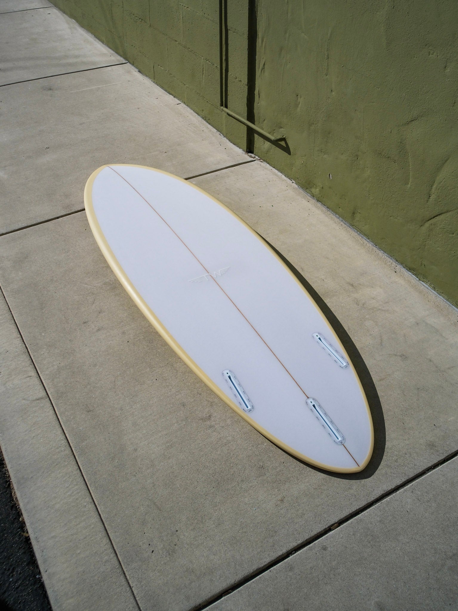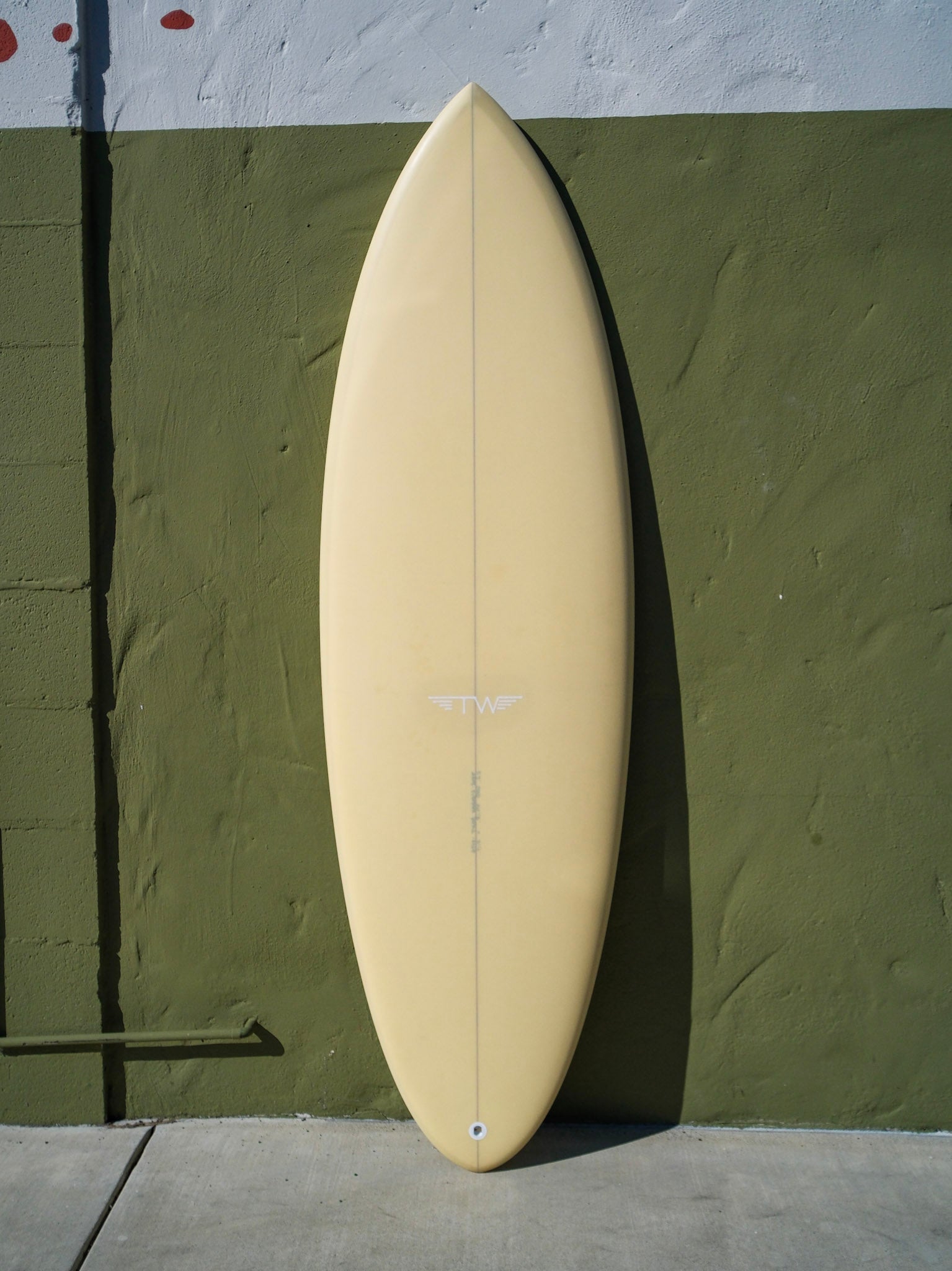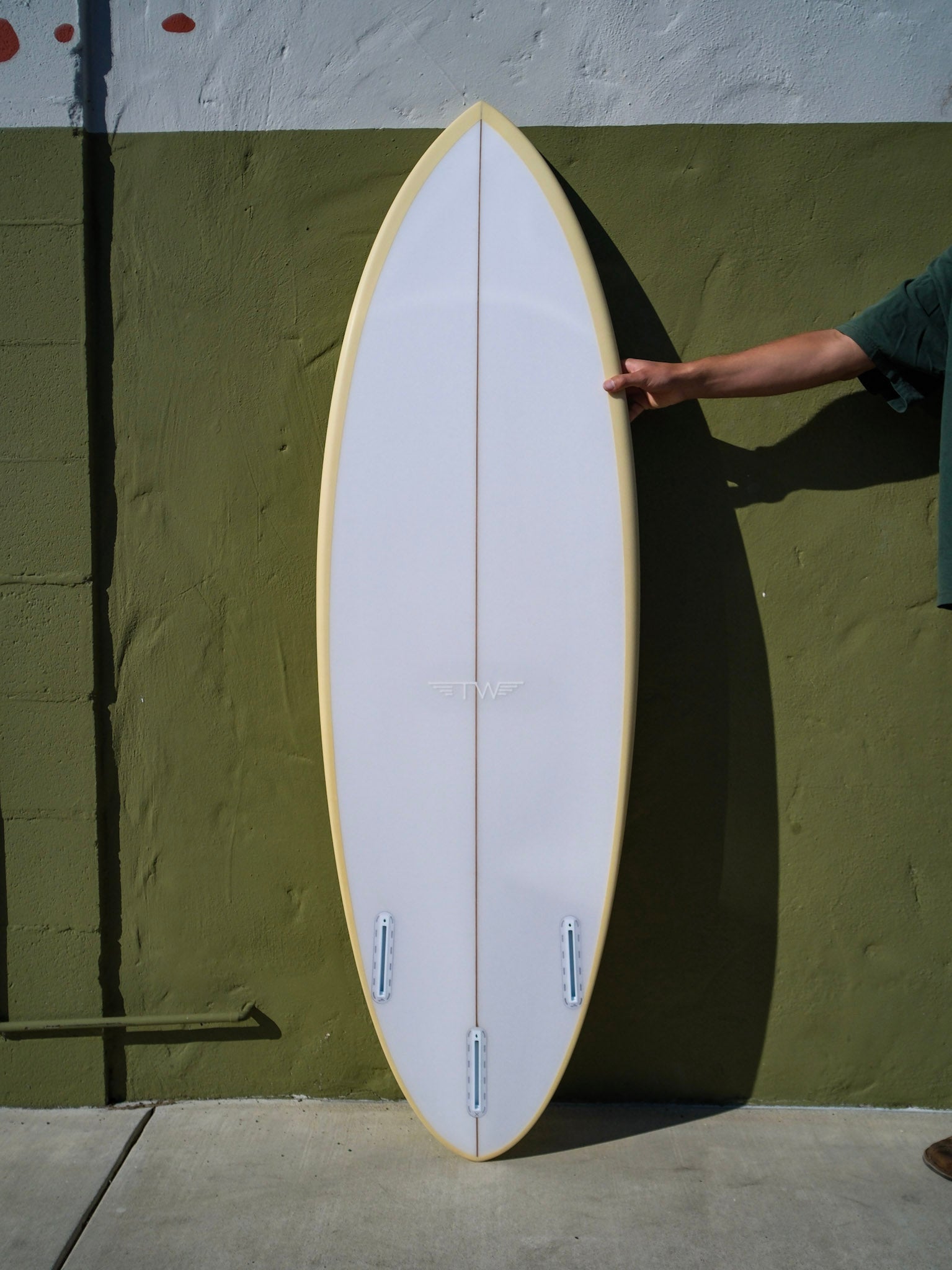 "Similar nose template to my fishes & zippers with a trusted rounded pin tail template and three fins. Fishy fun forward with hold and drive on the tail." - Tyler Warren