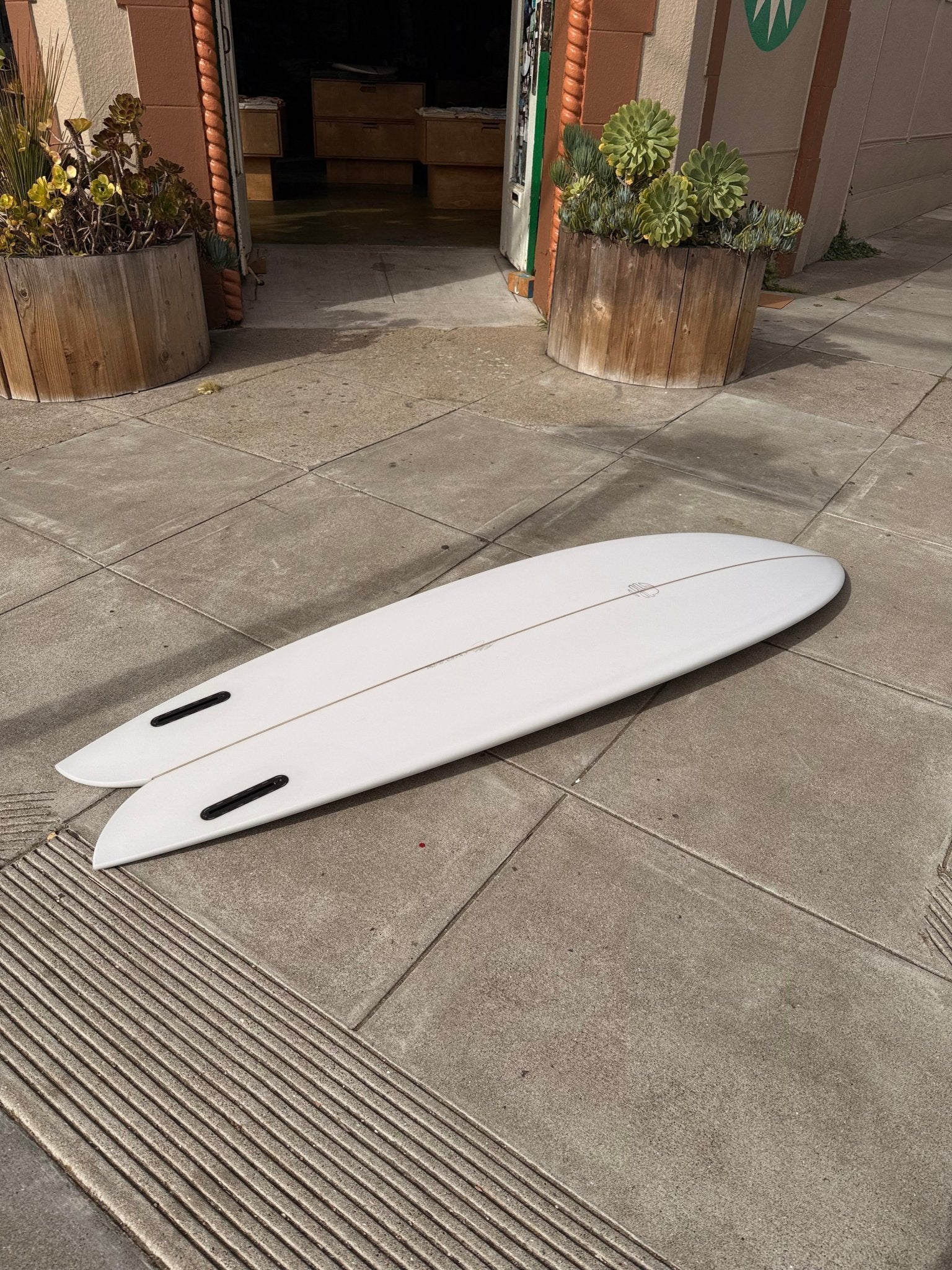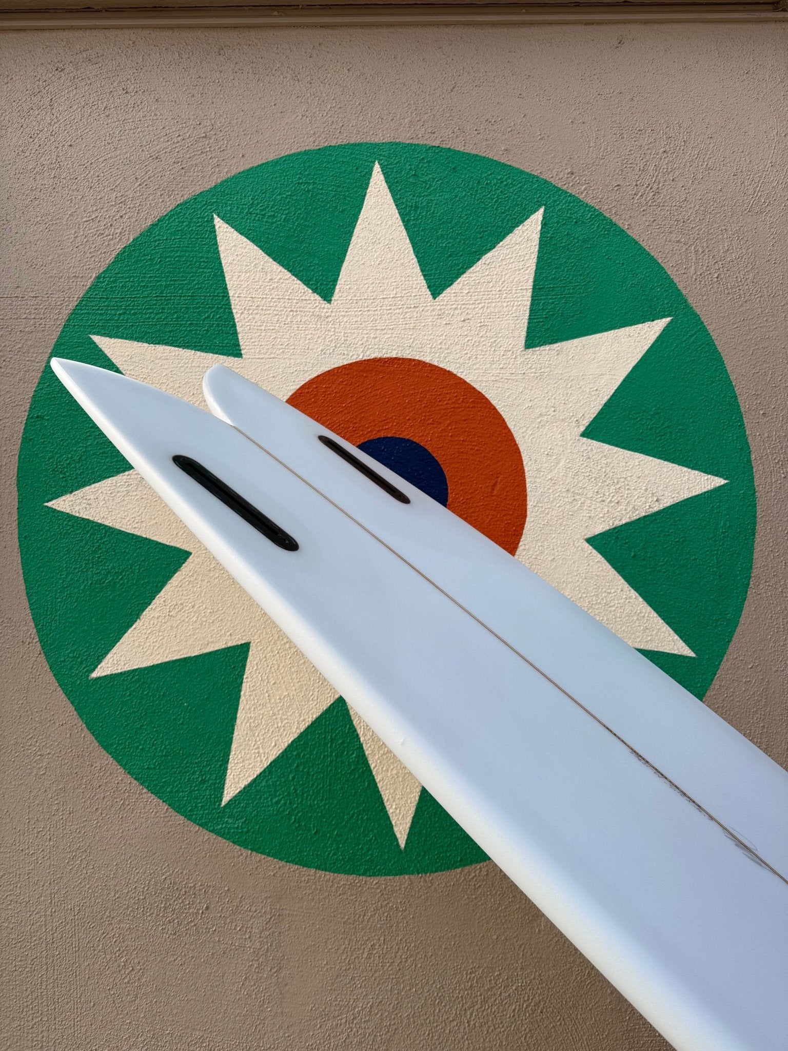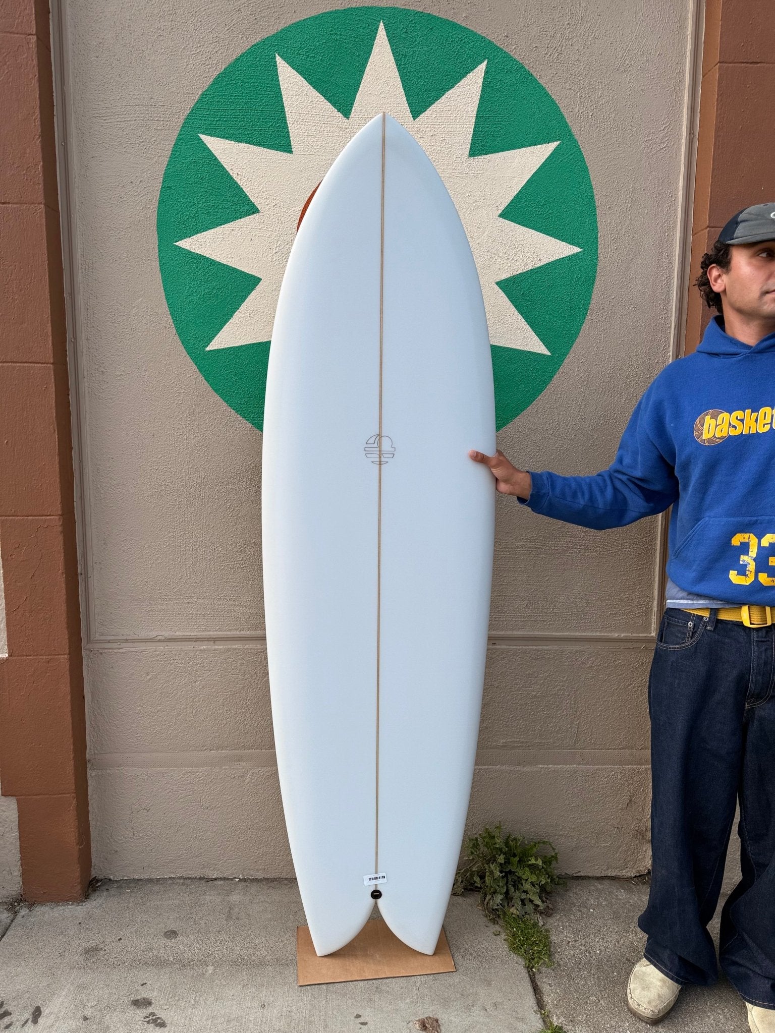 This is a San Diego-style fish in the Lis lineage. The wide nose will help you catch waves. The super short rail will give you the turning radius of a Smart Car. The tail width will rocket you down the line. The keel fins will project you out of your bottom turn with speed. This chubby little buddy is sure to be a blast!