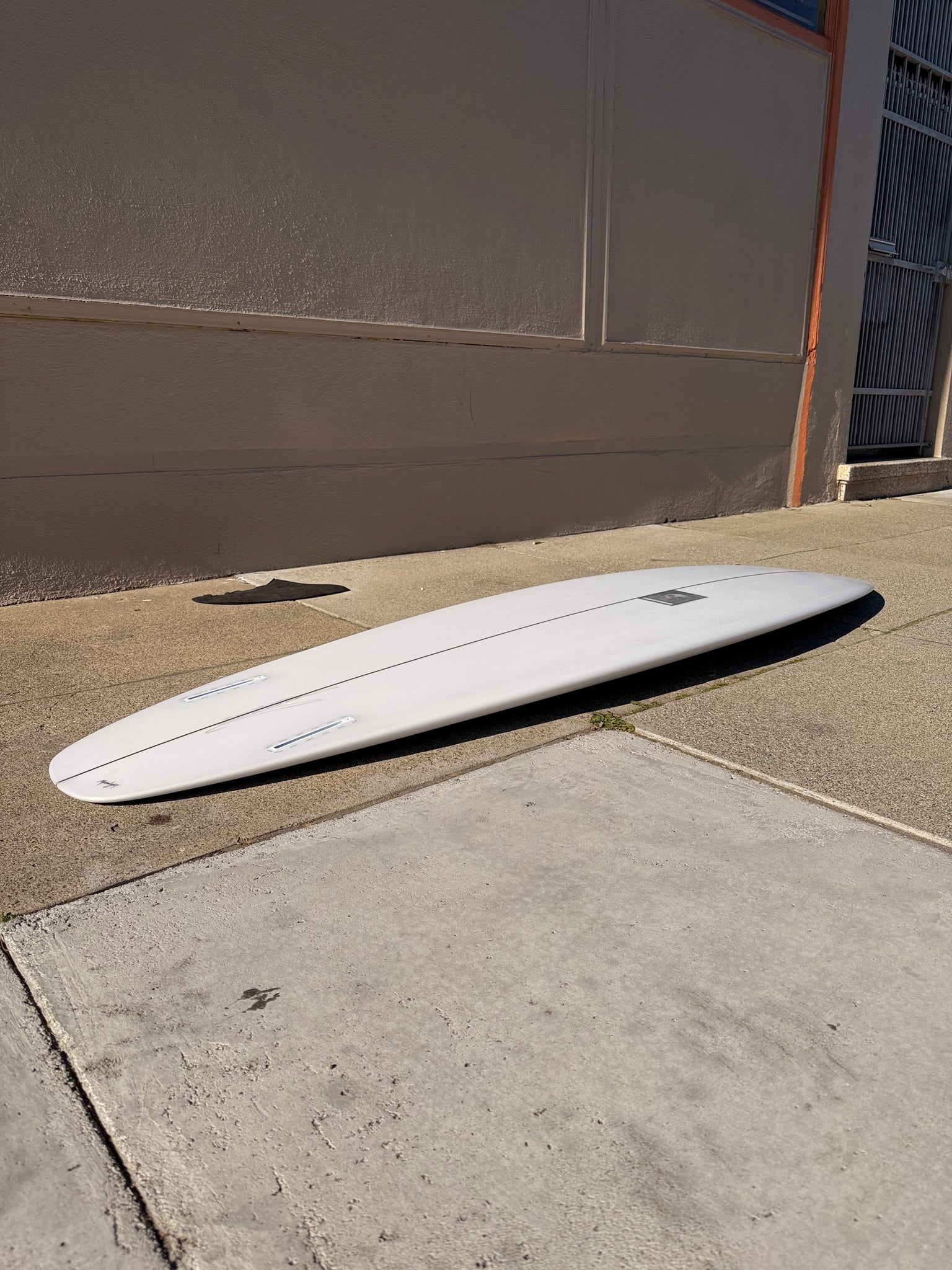 This is basically the SS package of the Flat Tracker with more cowbell. This version comes with a significant convex entry, which is complimented by a step deck. This displaces foam off the nose, allowing the right amount of roll in the bottom for a friction free entry while keeping the nose swing weight down for a better turning radius. The nose and tail are foiled thinner for added performance at higher speeds and the board is finished with a squashed diamond tail at the exit.