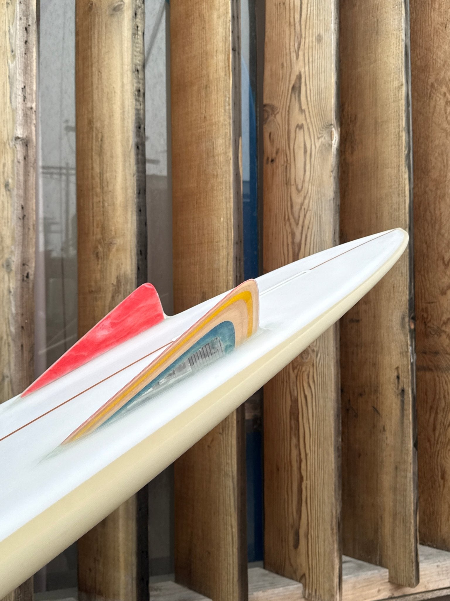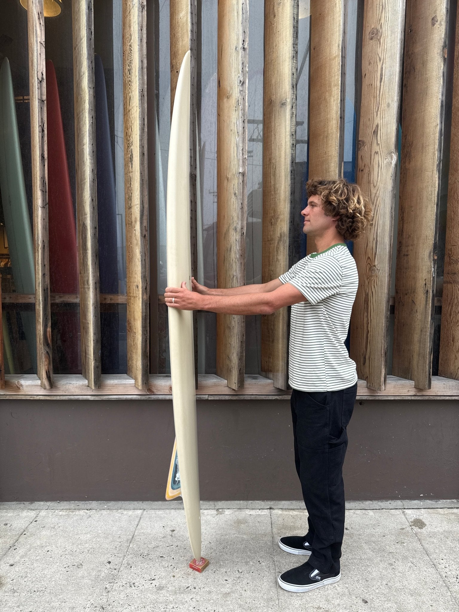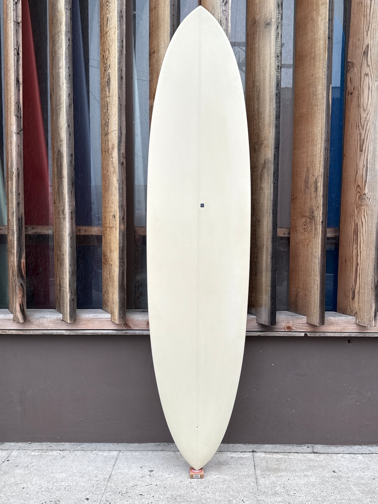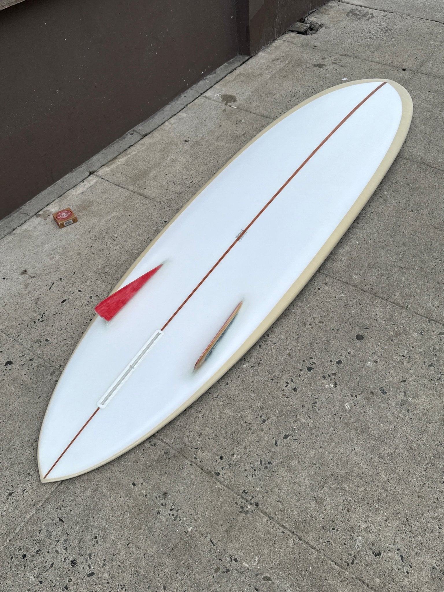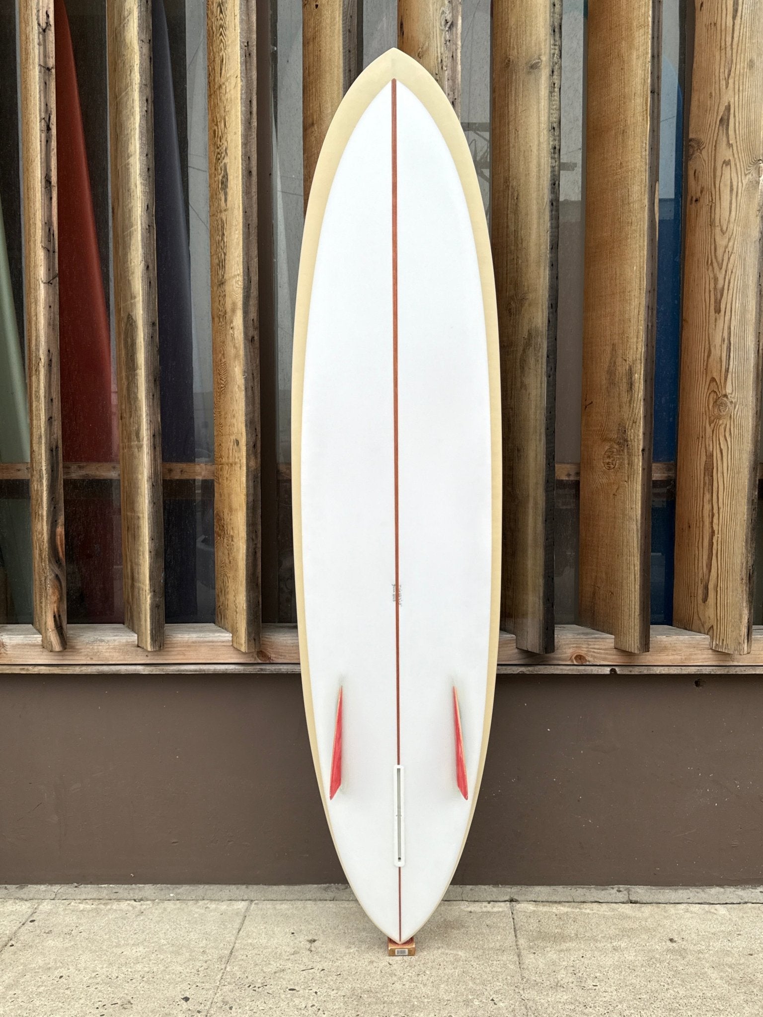 Double-enda style longer mid with a modified three-fin bonzer-inspired set up. Beveled rail and some roll to make weight transfers from rail to rail simple and smooth! Wide range of fun to be had.