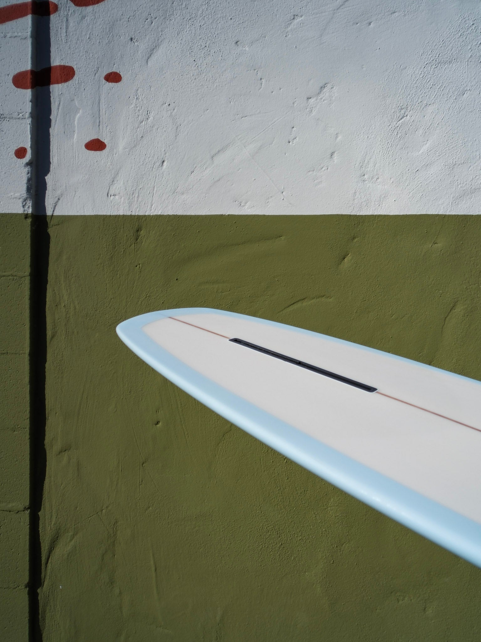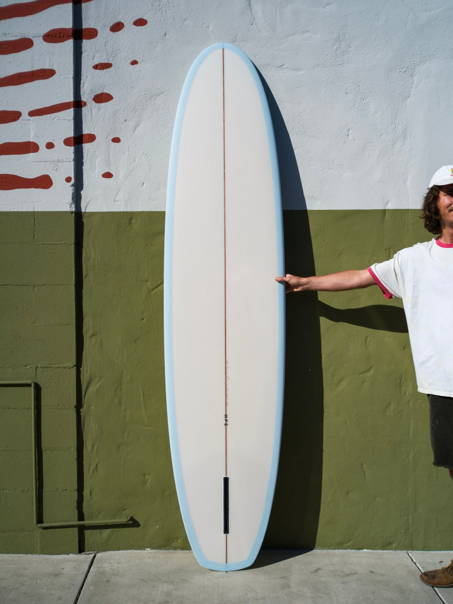"The Wildcat is a Board I've been working on since seeing The Hot Generation and The Innermost Limits of Pure Fun. Starting around 1975, I began developing versions with: Andreini, Liddle, Paul Gross, Hilbers, and Michael Saggus over the years. This modified V bottom has evolved with an updated rocker, foil, and a reduced V behind the fin. This is a a more user-friendly V bottom for fun in small to medium surf." - Kirk Putnam