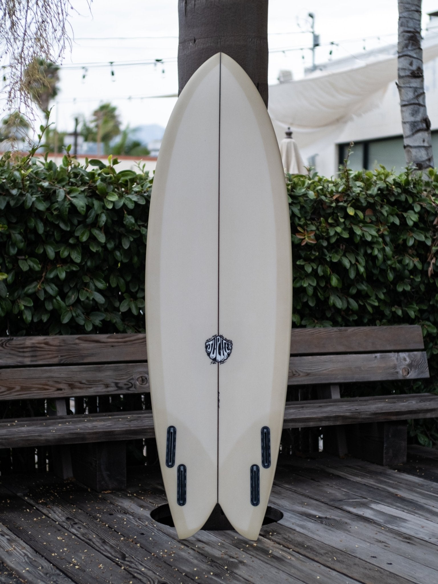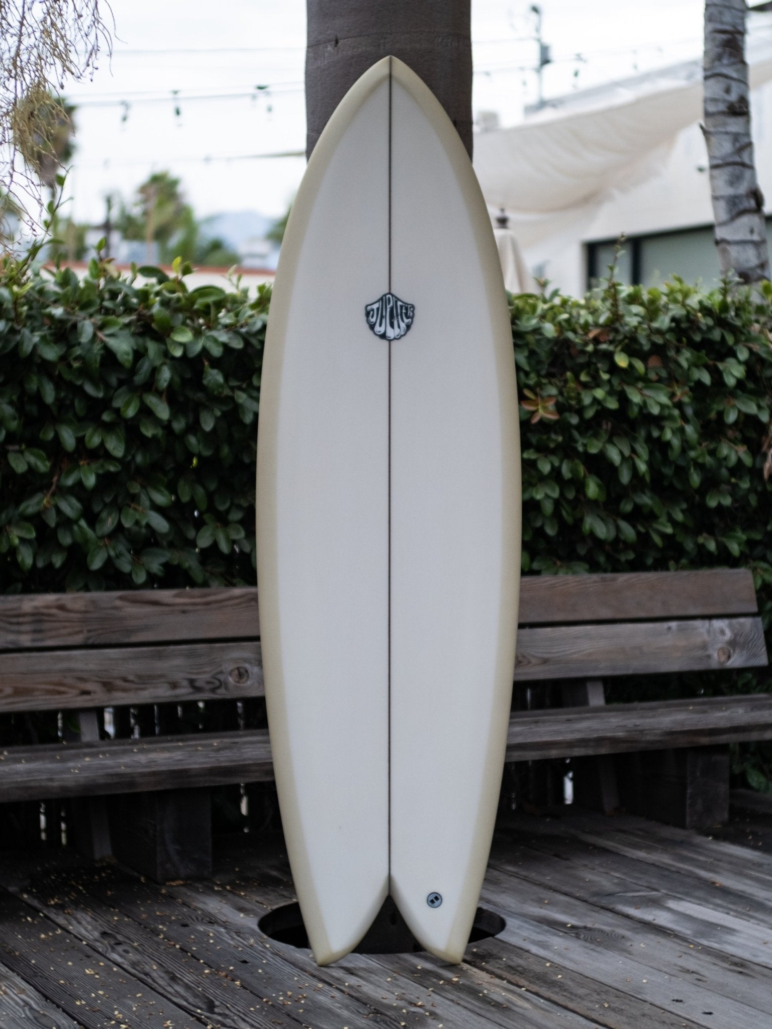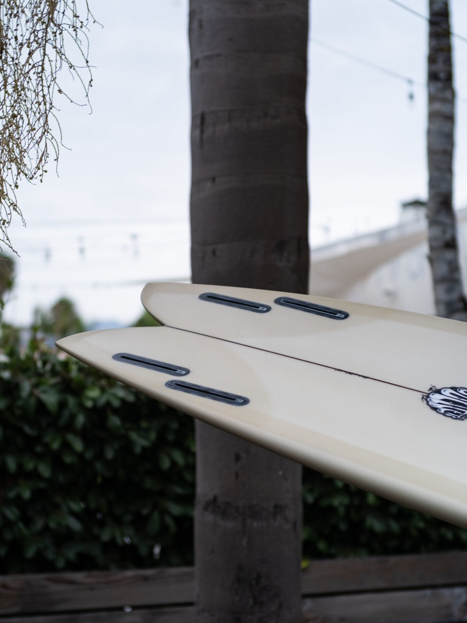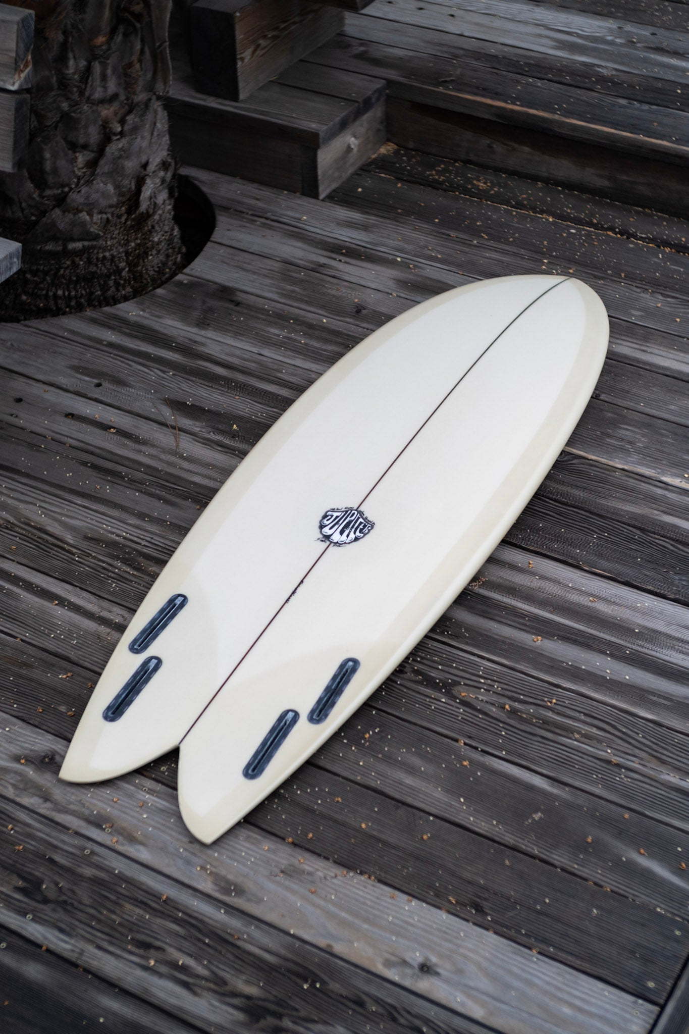 A curvier, more positive feeling, performance oriented quad fish design I've been enjoying. Not quite as wide through the tail as its traditional keel fish counterpart. While still maintaining some familiar fishy feelings. Bottom shape is a very slight forward v that blends to a single concave through the fins slightly flattening off the tail. This board feels alive under your feet and can handle above average conditions.
