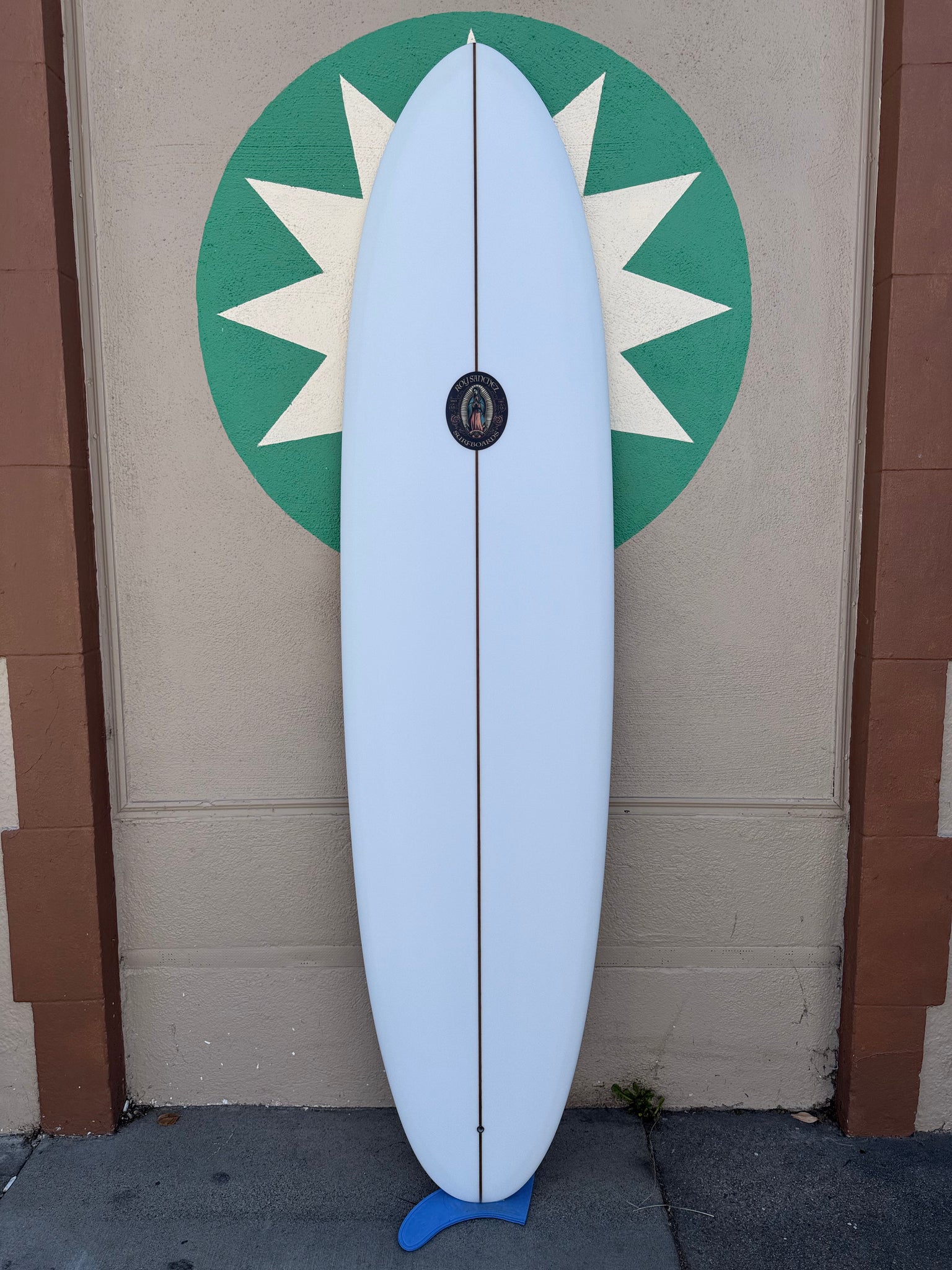 A true San Diego Classic. Soft single concave to vee out of the tail. With the 60/40 down rail and low rocker, this egg is sure to get you going where ever your heart desires with the speed to match.