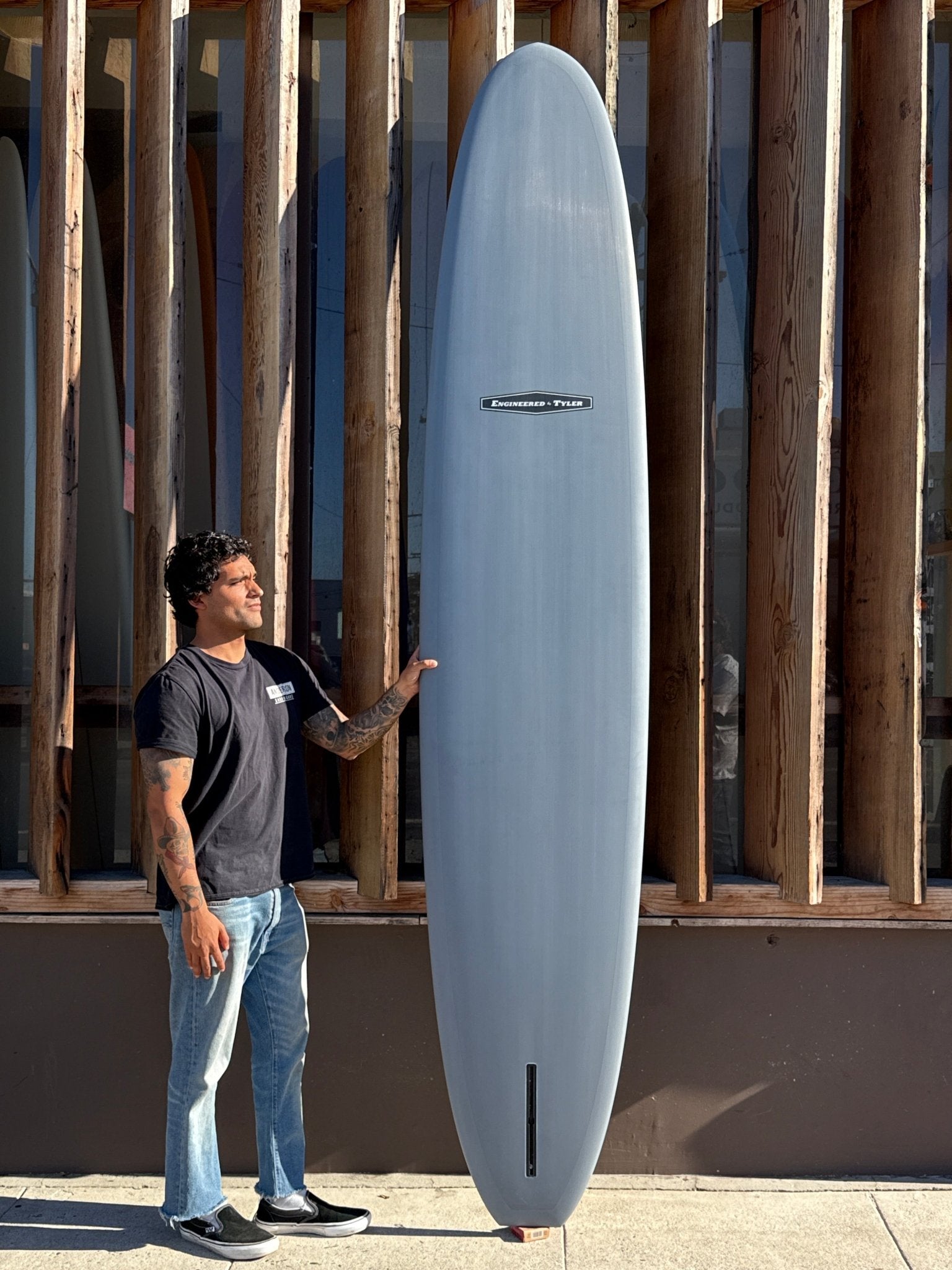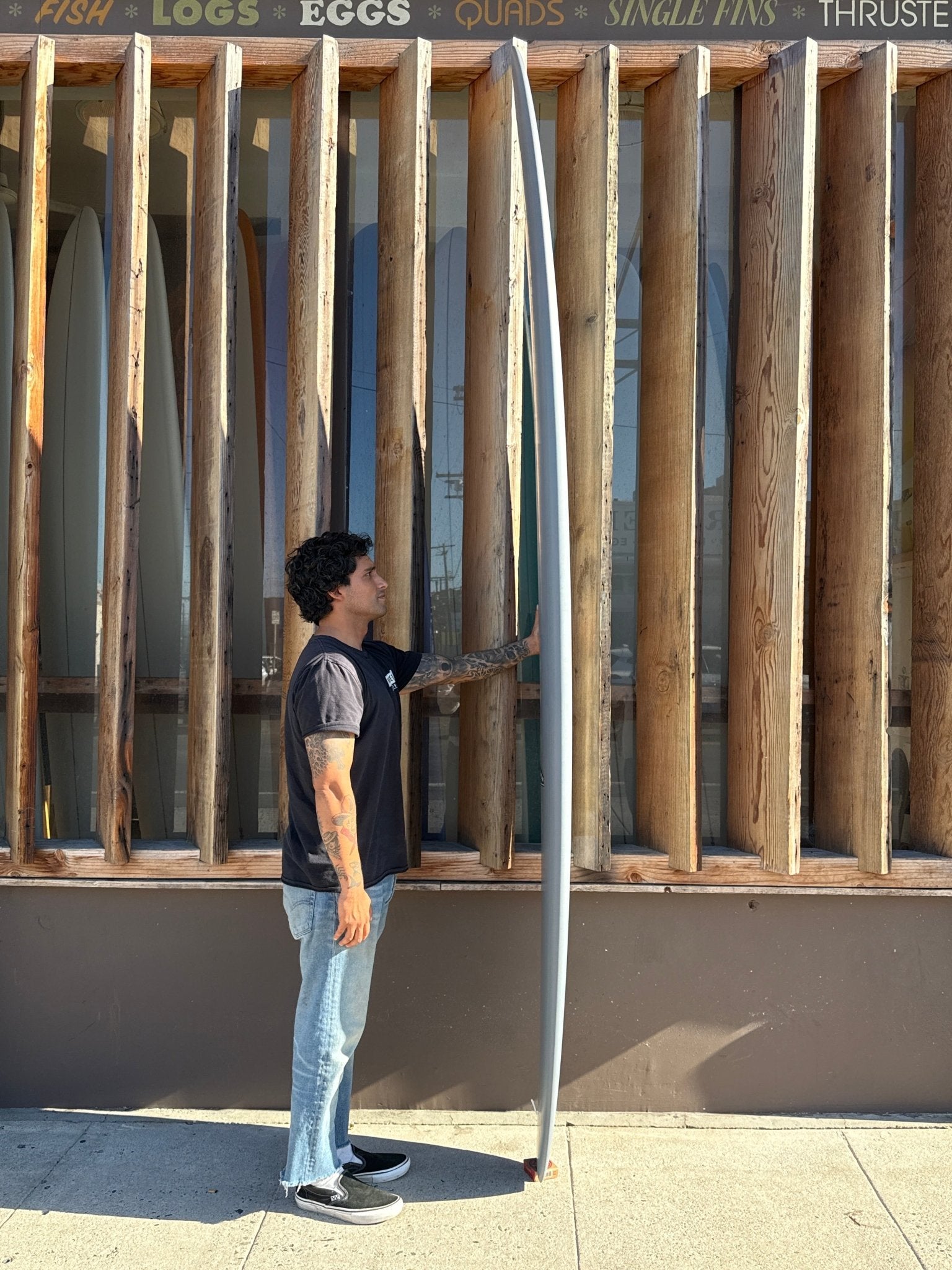The Matchbox is your California involvement style longboard. Combing through Tyler’s design library, teamrider Cormac, found and fell in love with a modified “Double Deuce”--the standard “Double Deuce” is Tyler’s take on late 50s and early 60s surfboard designs. Ironically, Aussie involvement style surfboards pull a lot of influence from this California design arch with the wide point back and a narrow nose. While Aussie Involvement boards are more catered to point breaks and down the line waves, The Matchbox is at home in these conditions but is also suited and excels in daily California beach break. Tyler’s newest model flies on even the smallest days featuring a rolled bottom and a flat deck making it fly through sections while lifting on the nose while having the ability to lay high-speed turns on rail. It’s a design meant for the advanced surfer, someone who is looking for something more sensitive under their feet out in the water