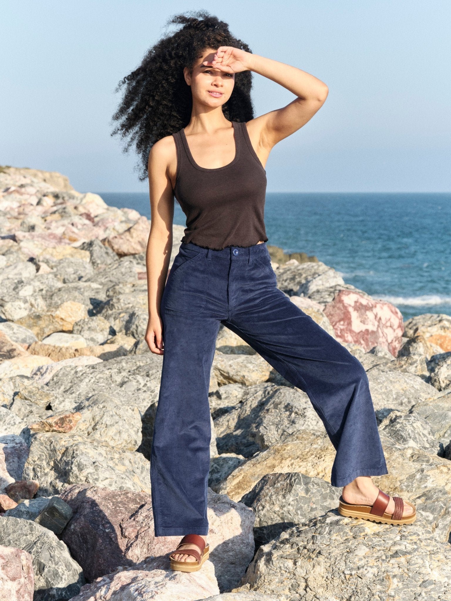 Stretch corduroy with a flattering wide-leg silhouette. The fabric moves with you while maintaining its structured shape. Cut with a 1" shorter rise than our classic Painter Pants for a modern mid-rise fit.