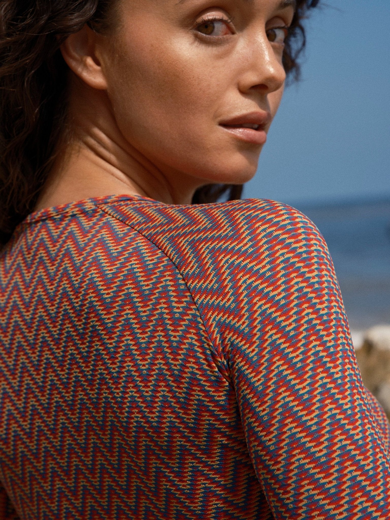Sun protection without the fuss. Our lightweight Surf Shirt is crafted with an intricate yarn-dyed jacquard inspired by vintage Italian knitwear and thoughtfully finished with a ruffled, contrasting stitched edge. Nonna-approved!