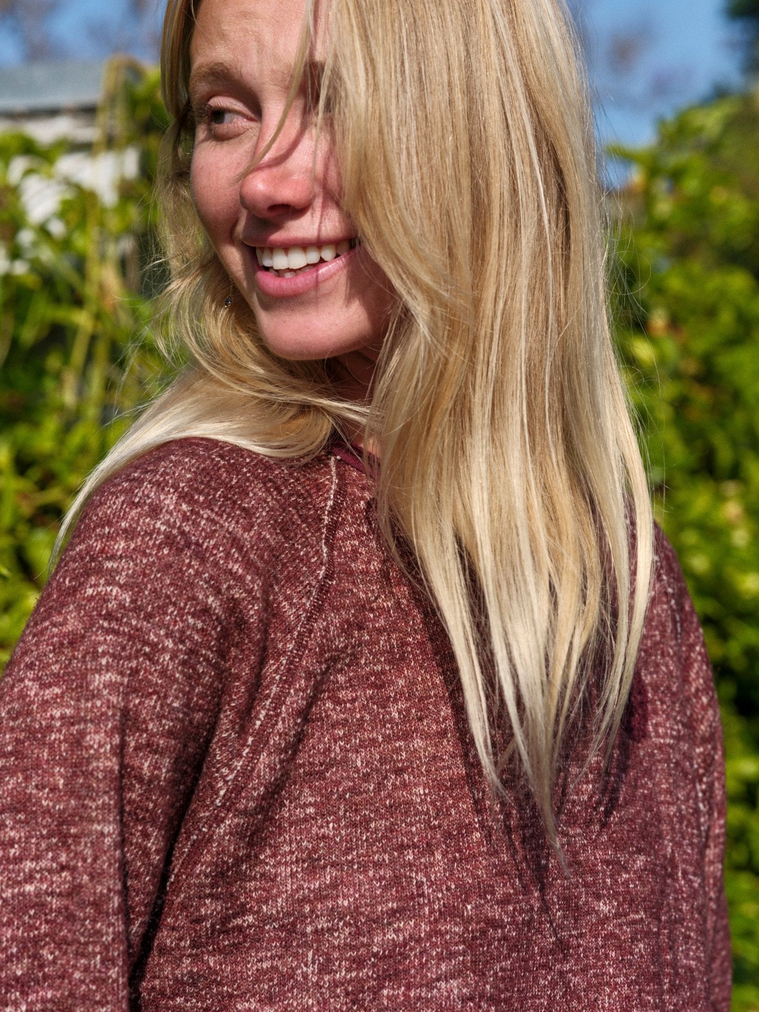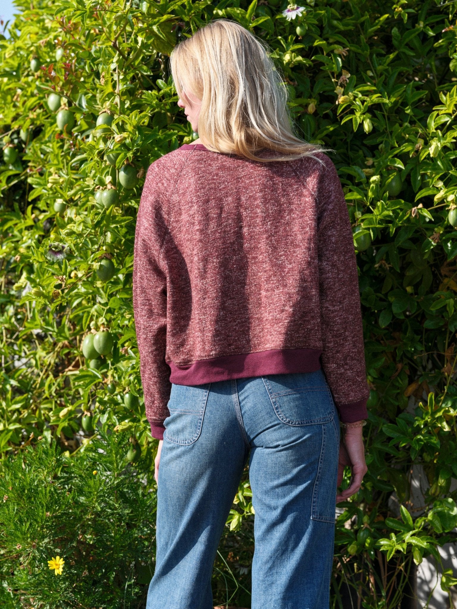 A crew sweatshirt that feels like a sweater. The premium fabric is softly textured and yarn-dyed for subtle color variation. Extra protection from bad energy is provided through a classic dutch hex that has been adorned through chain-stitched embroidery. India is 6'0" tall and wearing size S.
