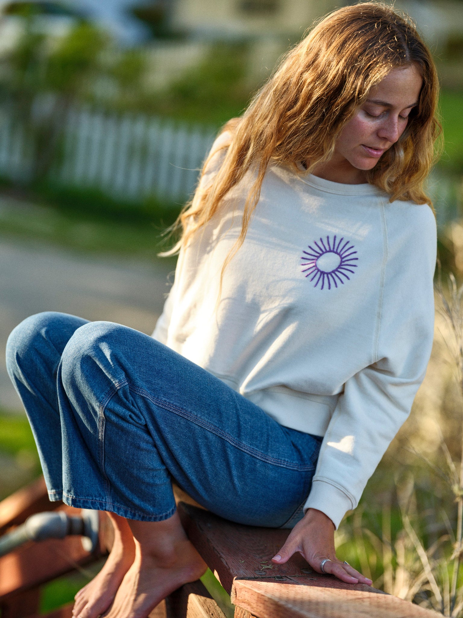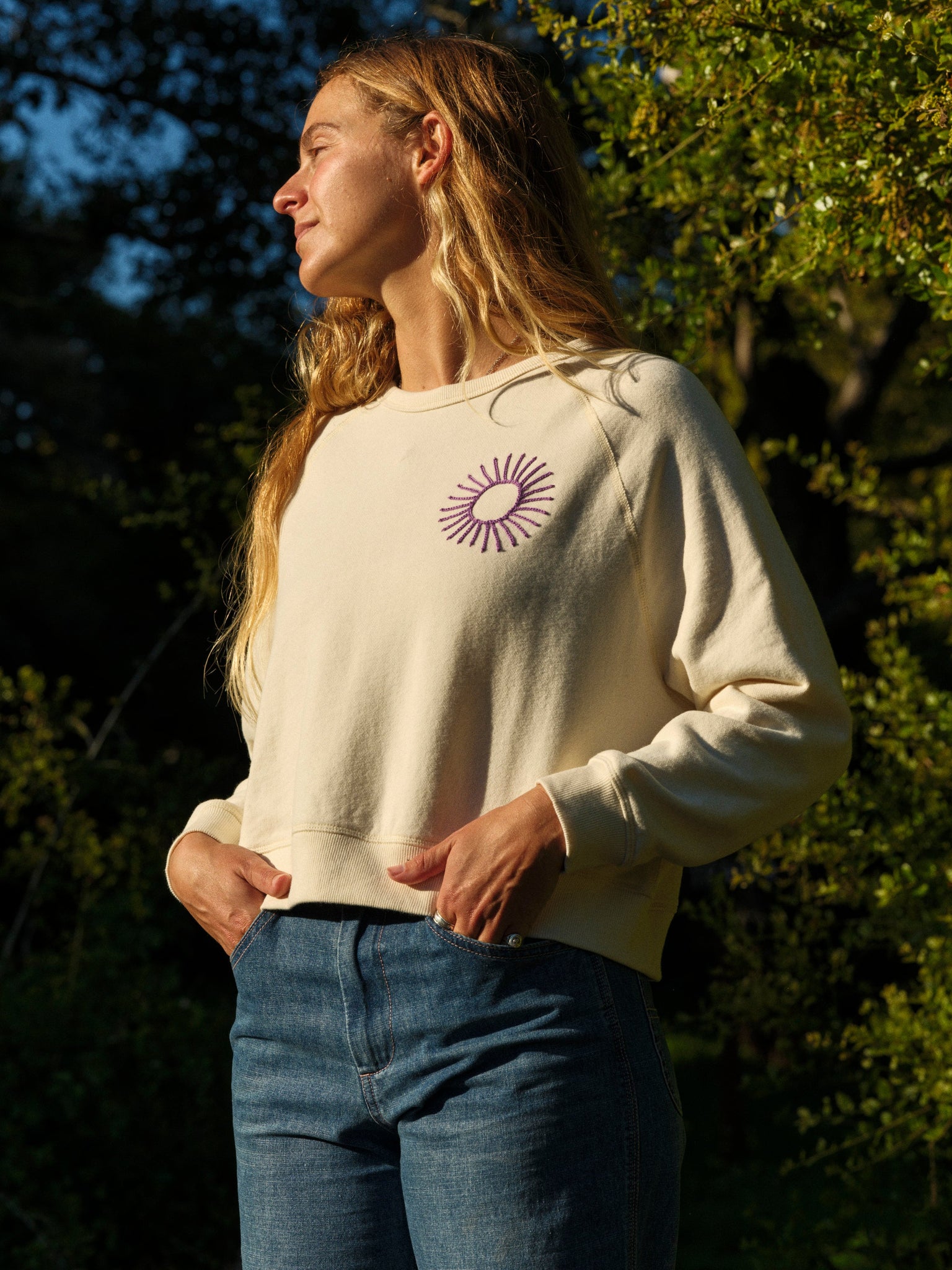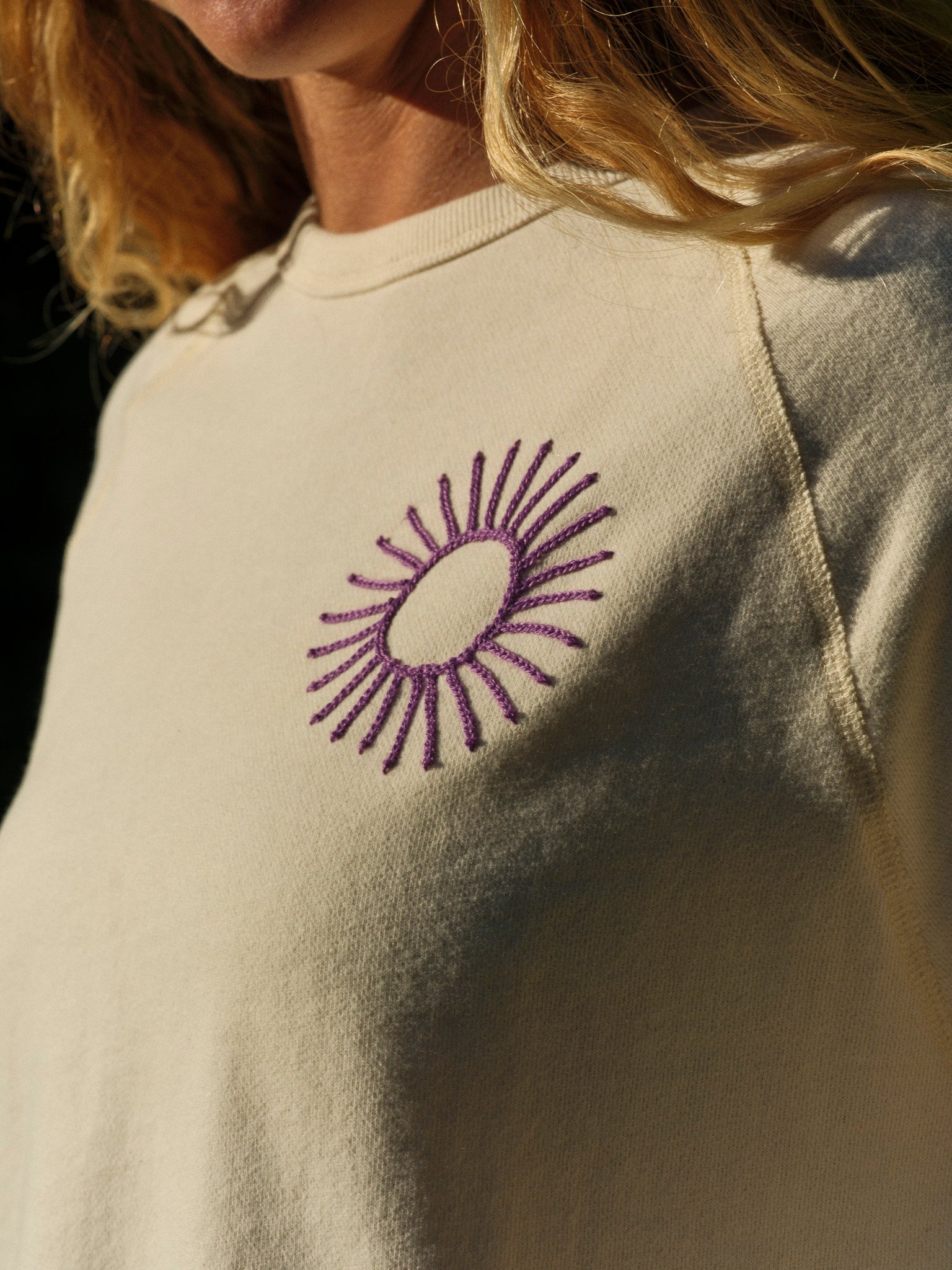 Project warmth in this sweatshirt with a relaxed fit and an embroidered sun.