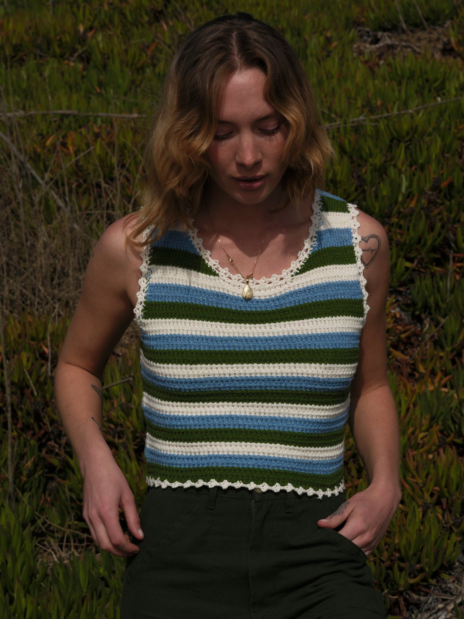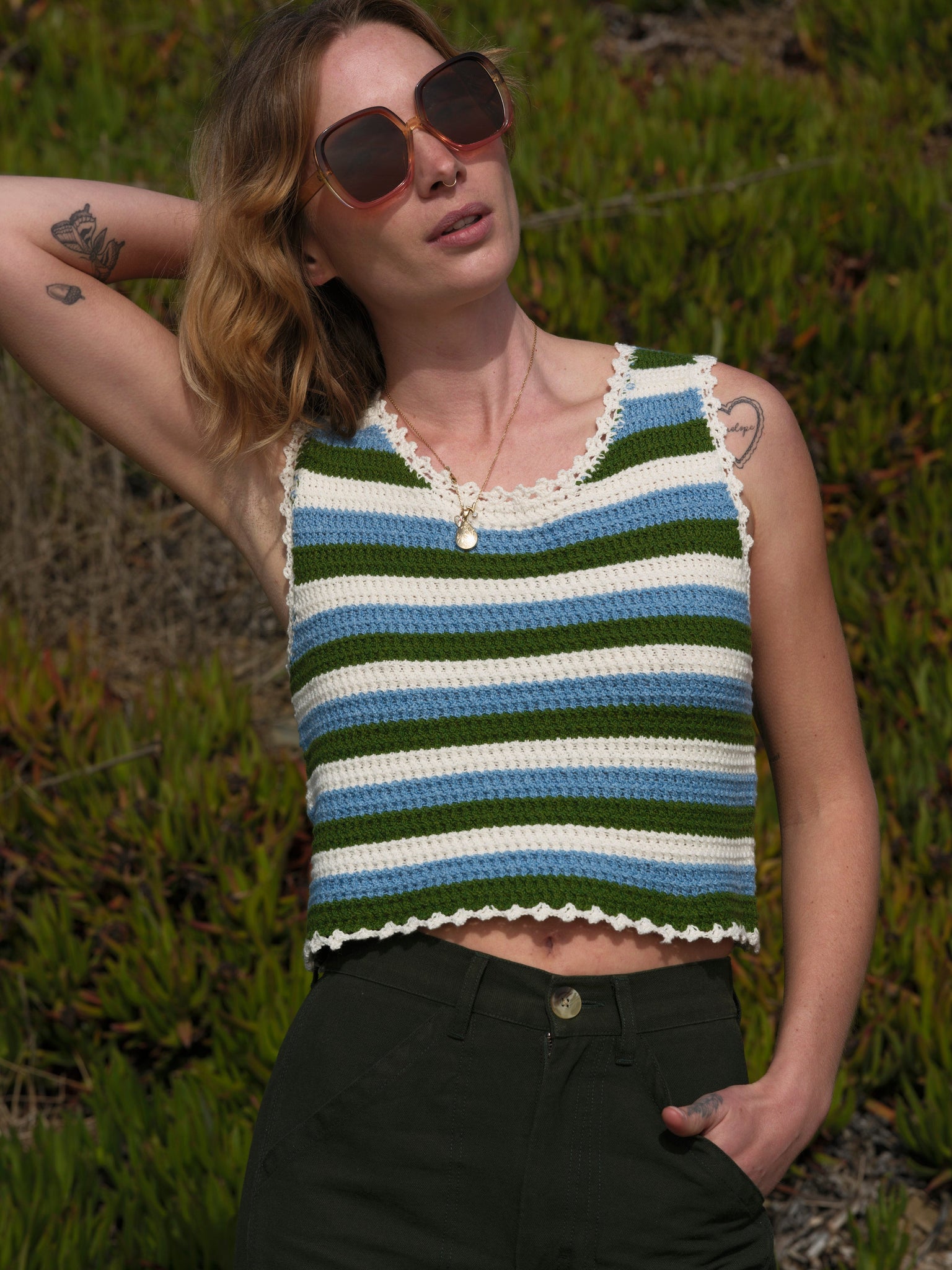 Our bestselling summer top now with vintage-inspired stripes. Karli is 5' 9" tall and wearing size XS.