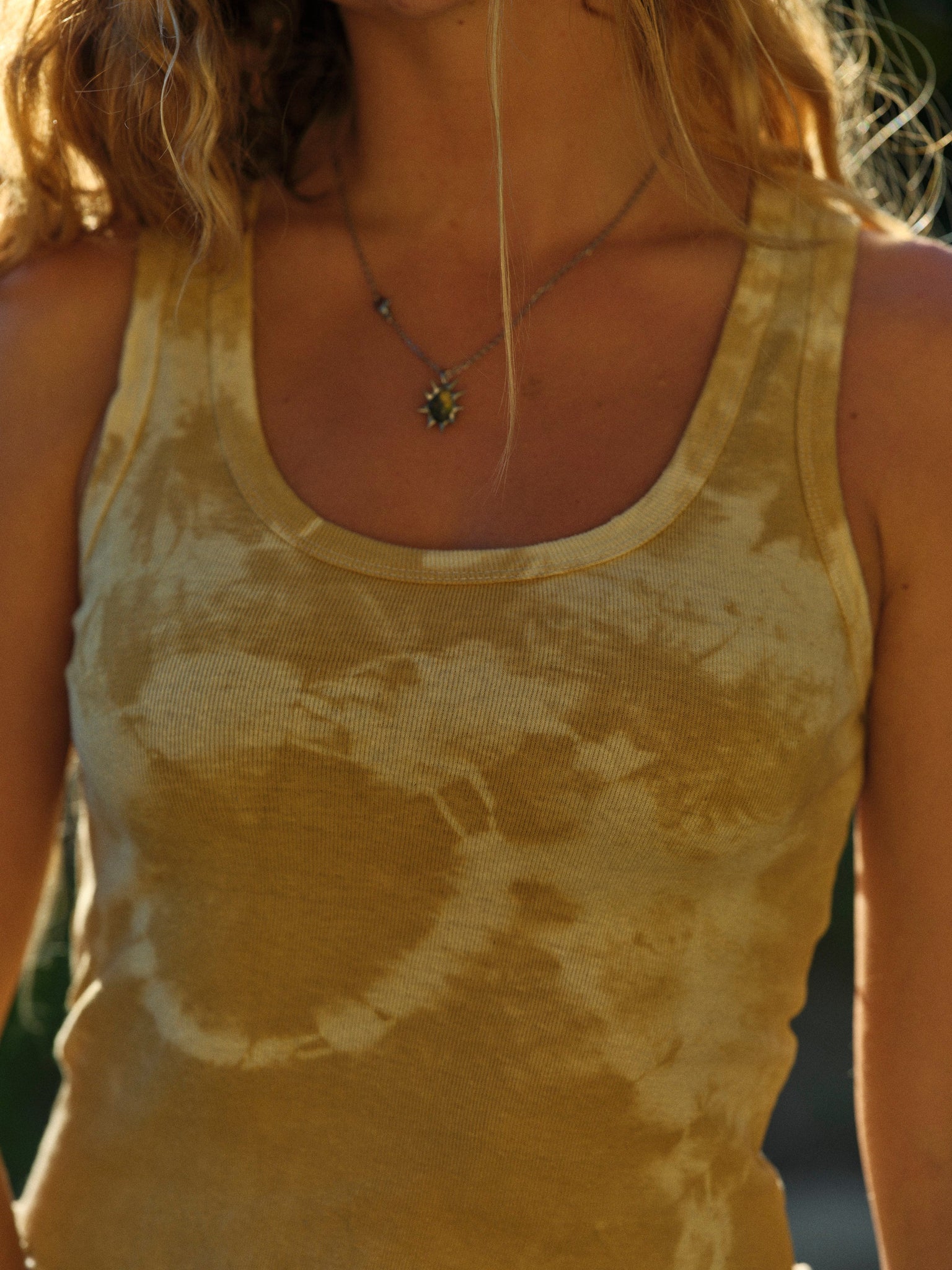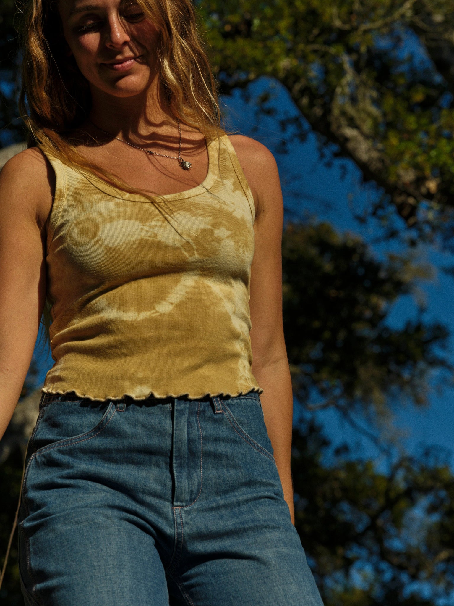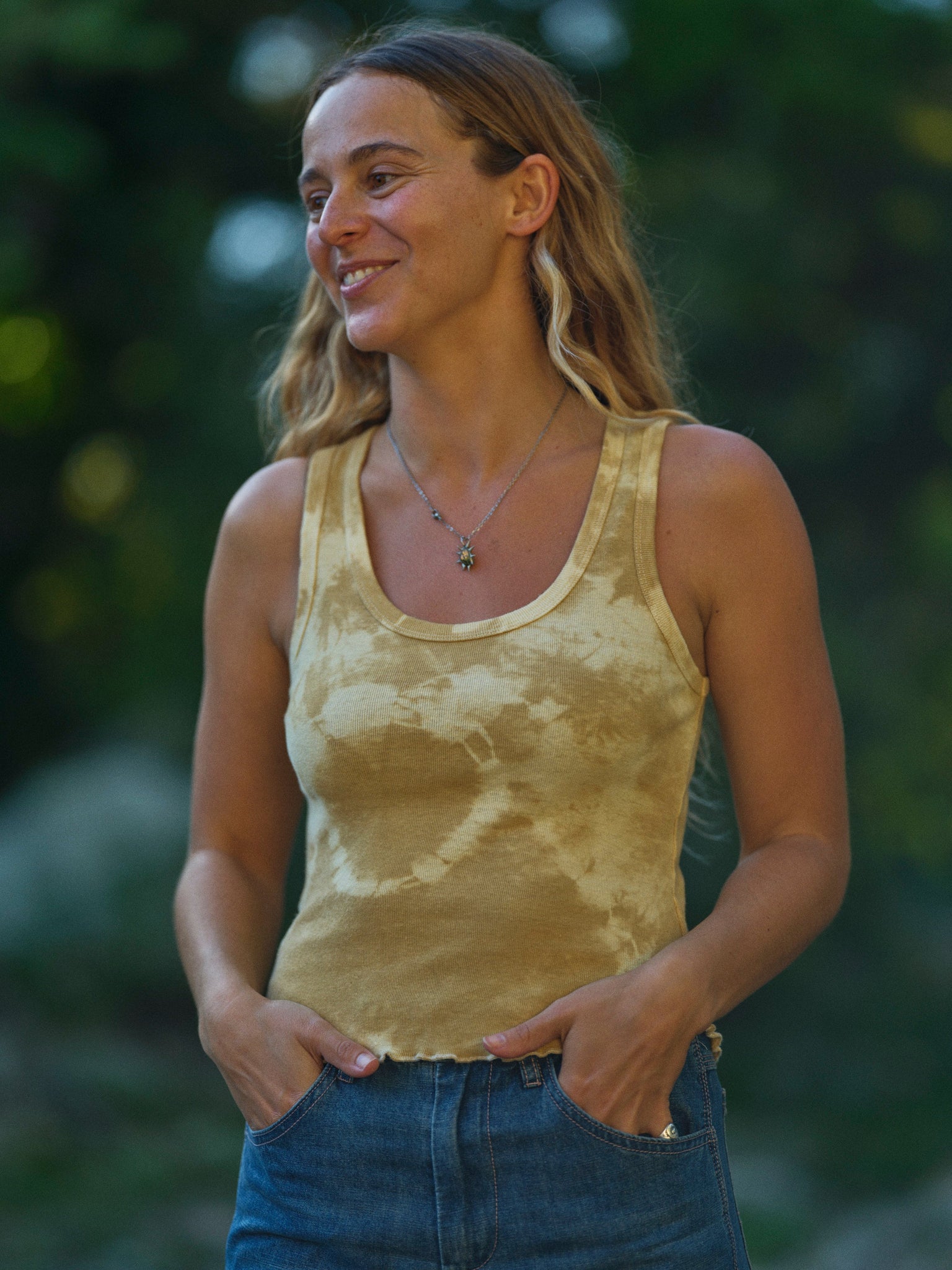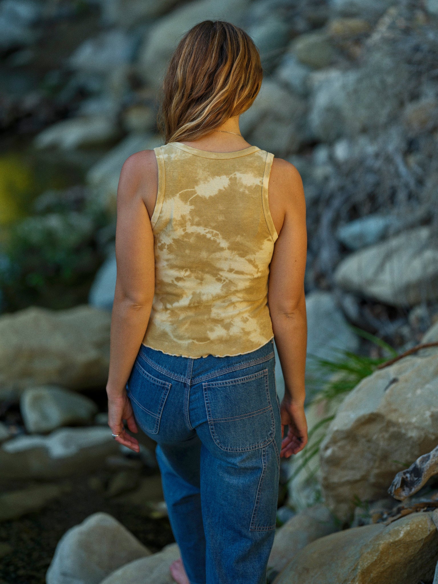 These tanks are dyed with plants! We gave Laura from Ride or Dye Ojai our best selling hemp tanks and she dyed them by hand in her idyllic garden in Ojai, California.