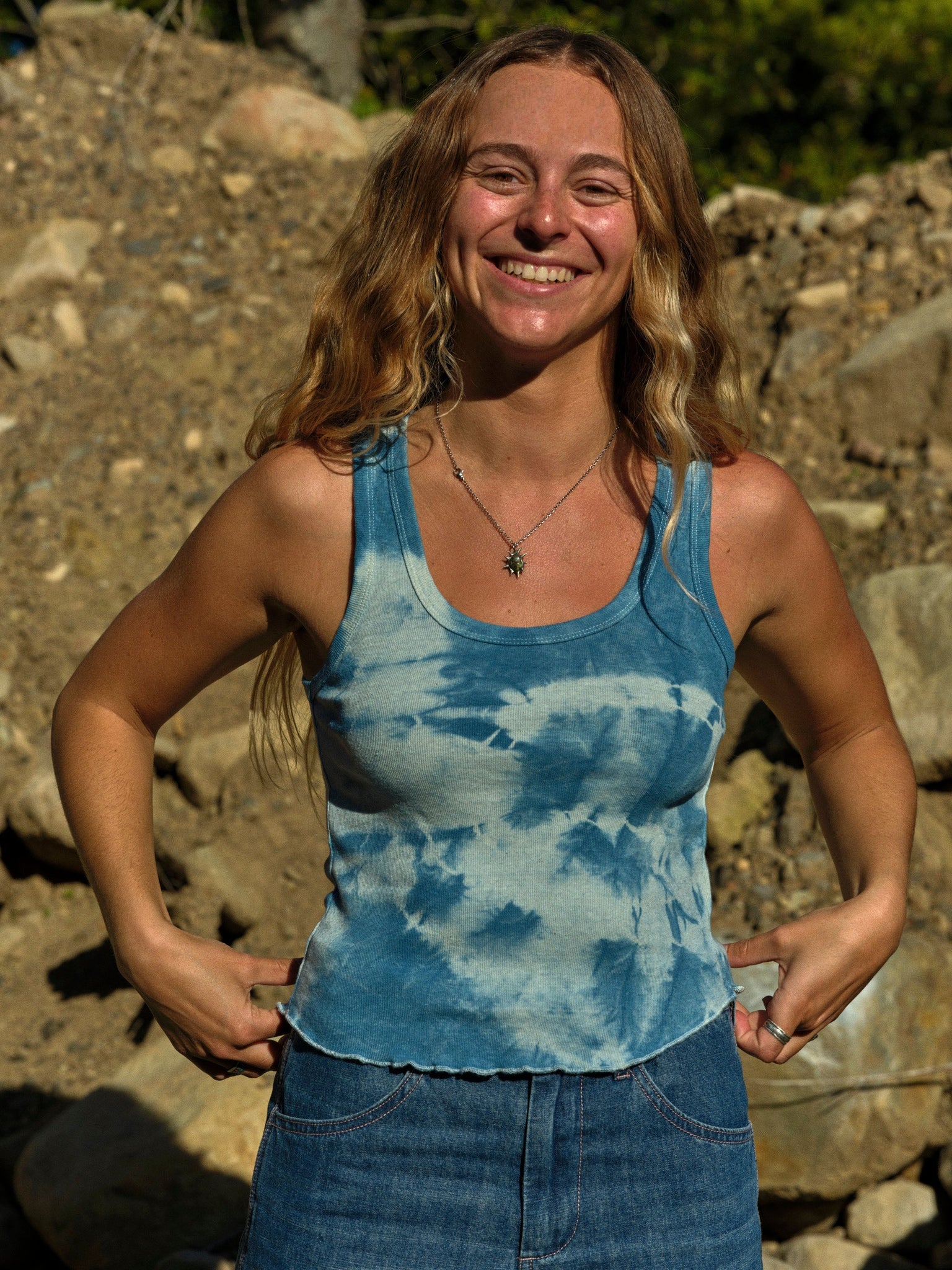 These tanks are dyed with plants! We gave Laura from Ride or Dye Ojai our best selling hemp tanks and she dyed them by hand in her idyllic garden in Ojai, California.