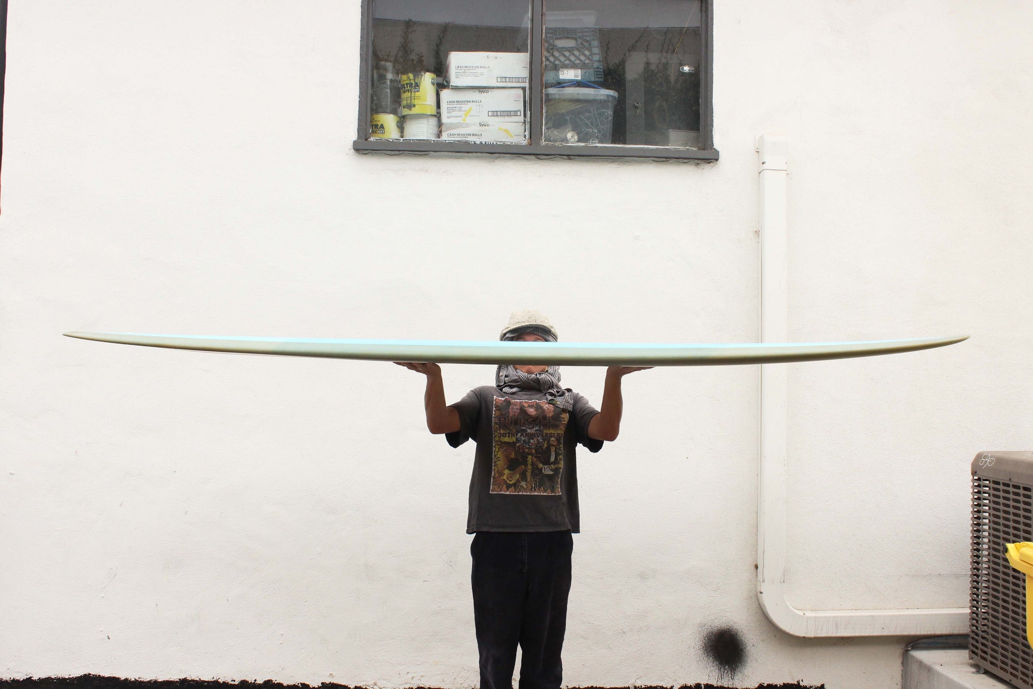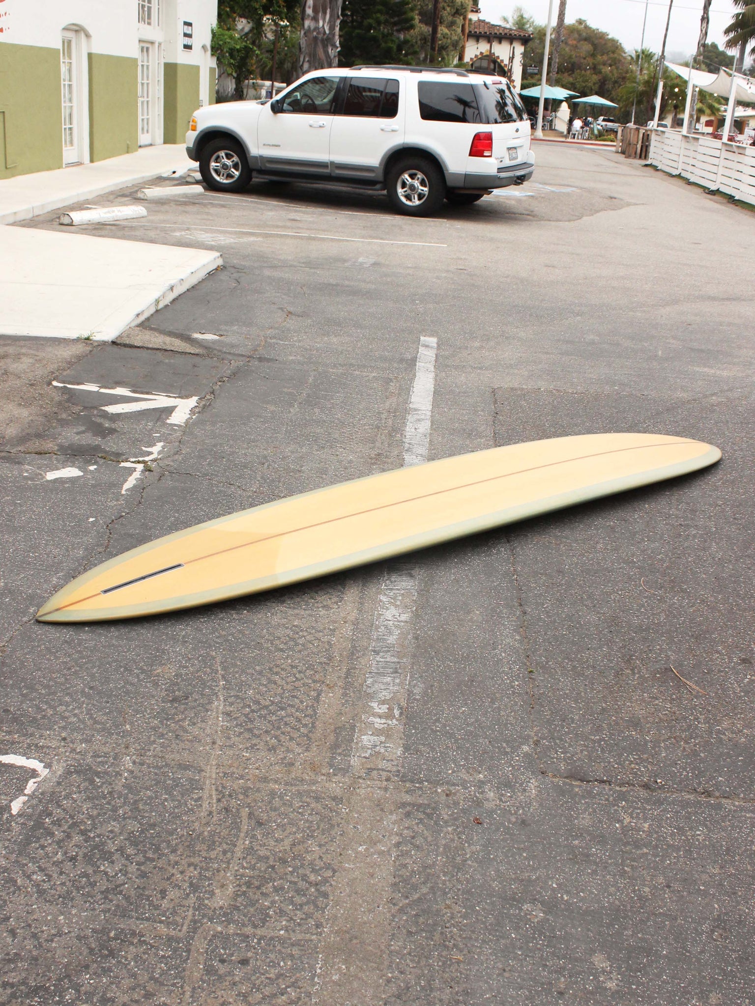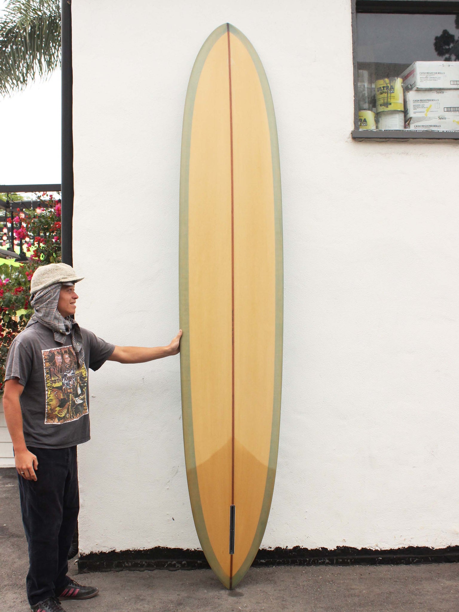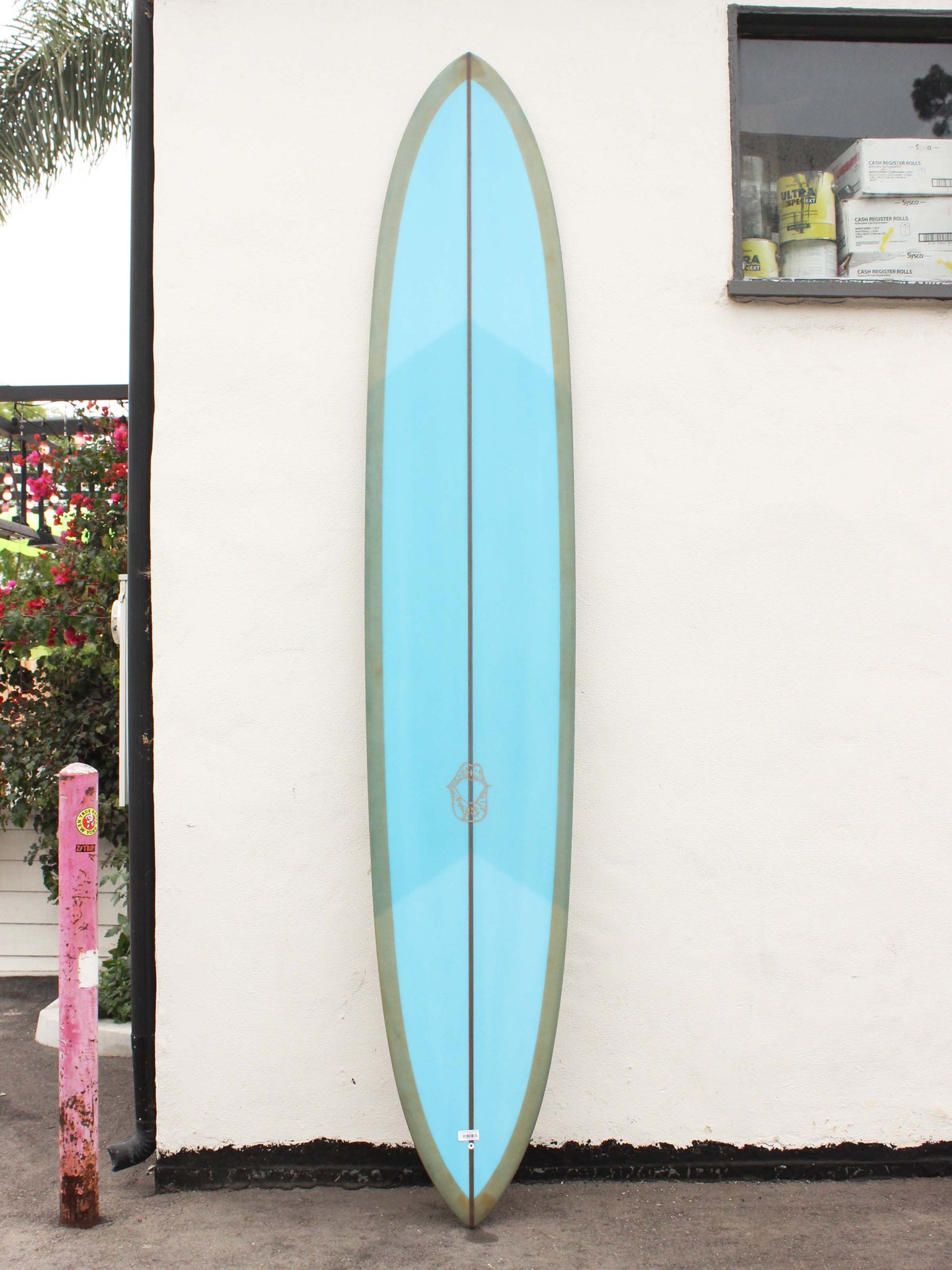 A true glider, an homage to the master of big board glide Skip Frye. This board is super fast with minimal effort. Butery off the tail with a maximum trim spot. Excels in knee to overhead surf. Typically made 10'-12' long.