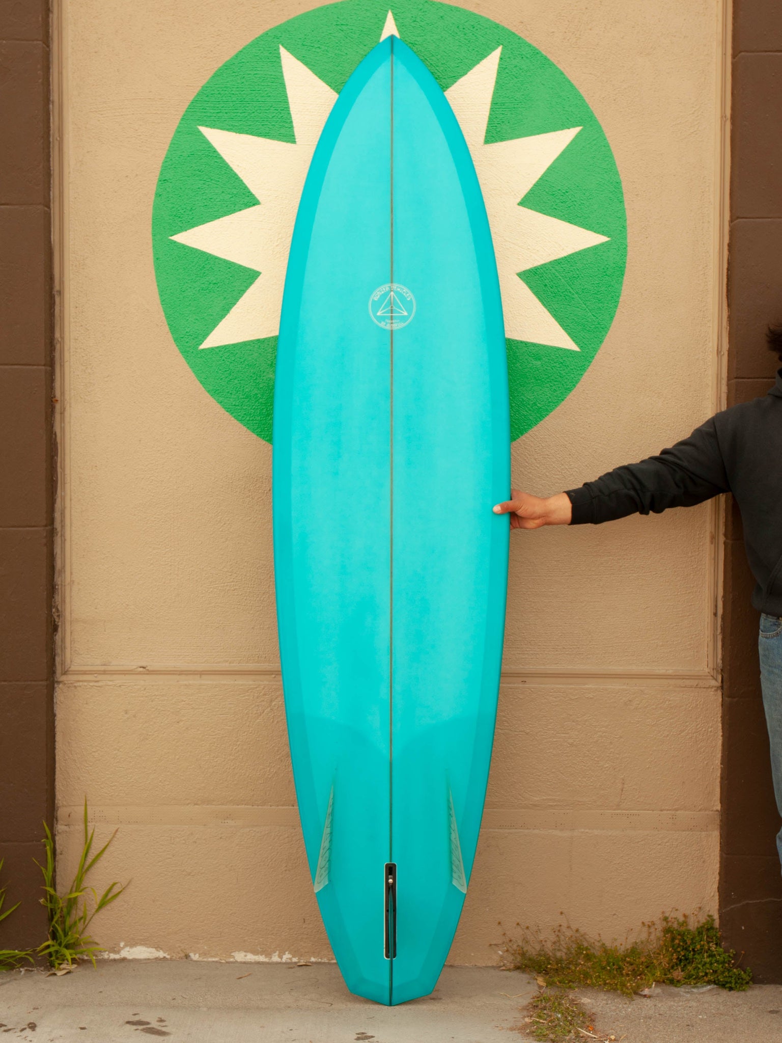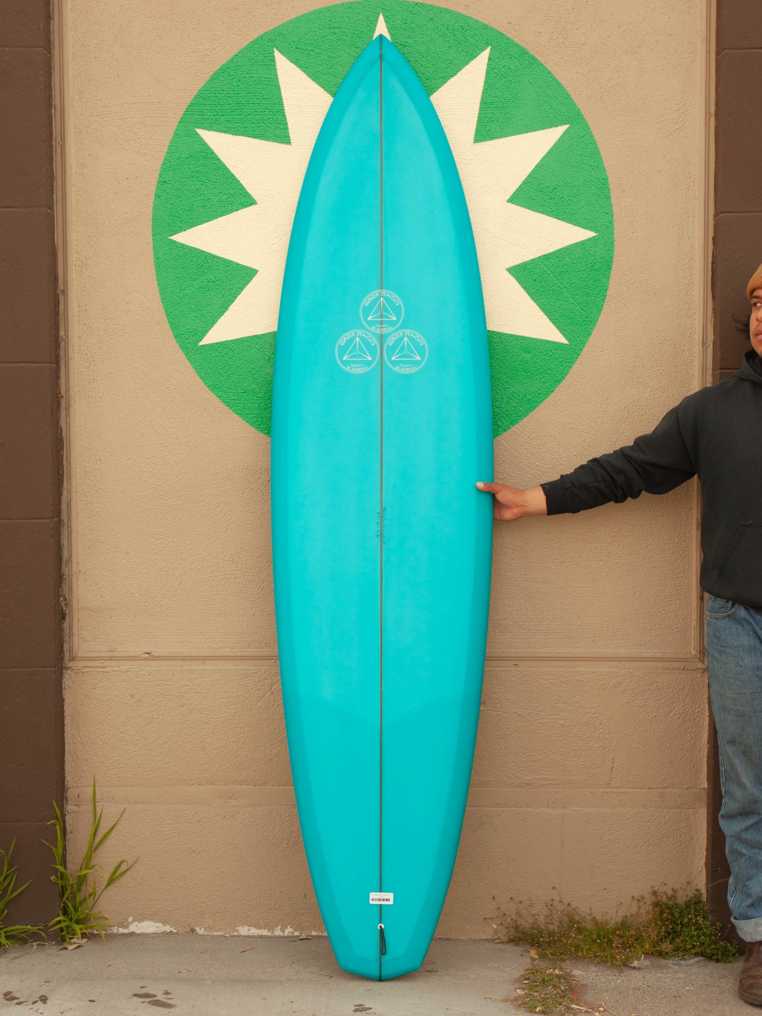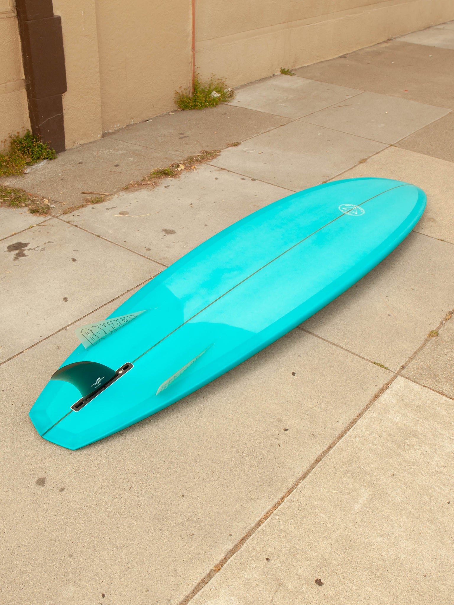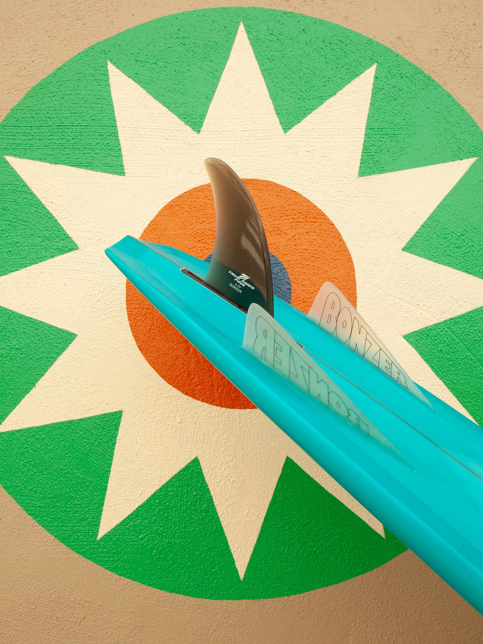 "This was our most popular Bonzer shape during the mid to late 70’s. Russ Short, Duncan, Cliff Collinge and I all rode slight variations of this template during the time. This model was pushed to the limit in all types of waves and proved to be a very versatile high-performance surfboard. The Russ Short model is used mostly with the 3 fin set up, but can incorporate the 5 fin system as well. The Russ Short model works well as a diamond, round or swallow tail." - Malcolm Campbell