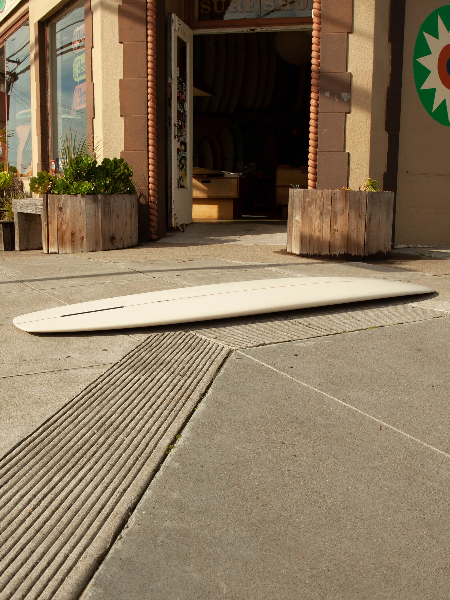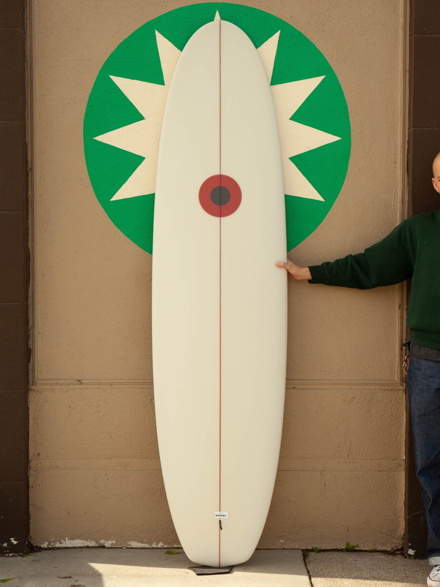 The Wildcat is a Board I’ve been working on since seeing The Hot Generation and The Innermost Limits of Pure Fun. Starting around 1975, I began developing versions with Andreini, Liddle, Paul Gross, Hilbers, and Michael Saggus over the years. This modified V bottom has evolved with an updated rocker, foil, and a reduced V behind the fin. This is a a more user-friendly V bottom for fun in small to medium surf." - Kirk Putnam