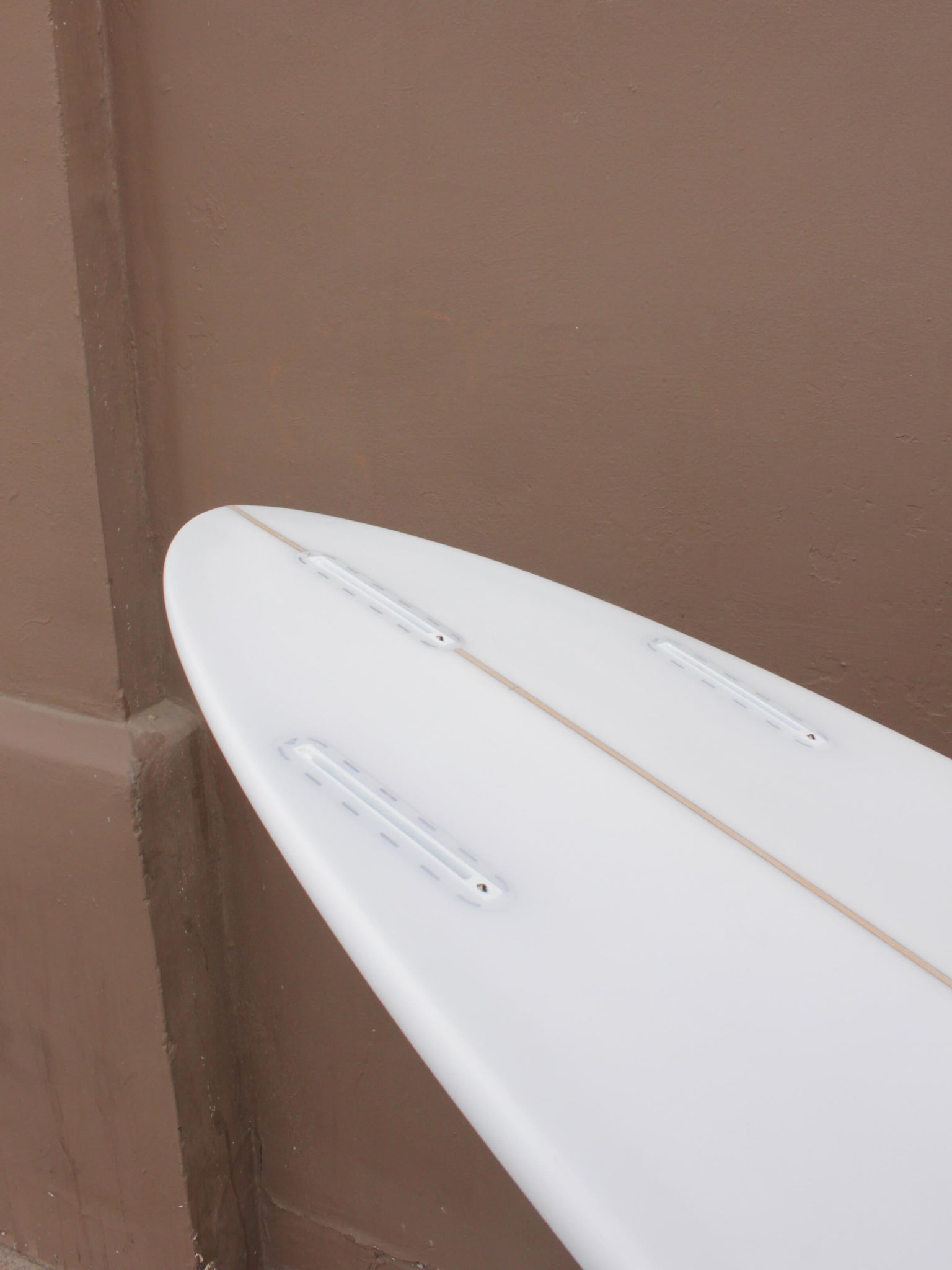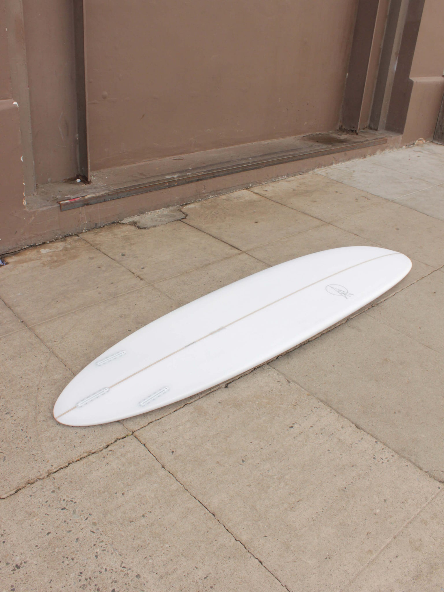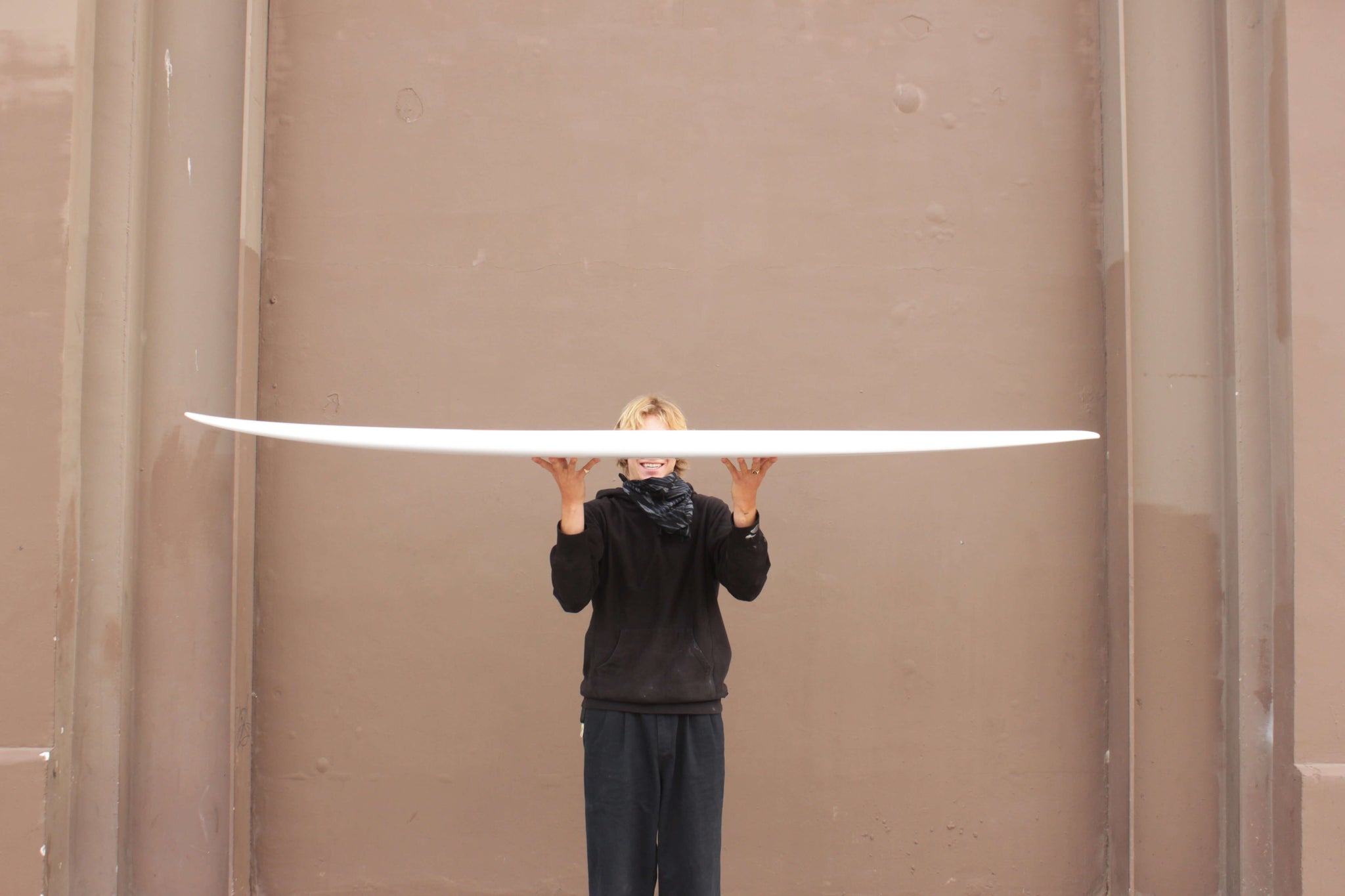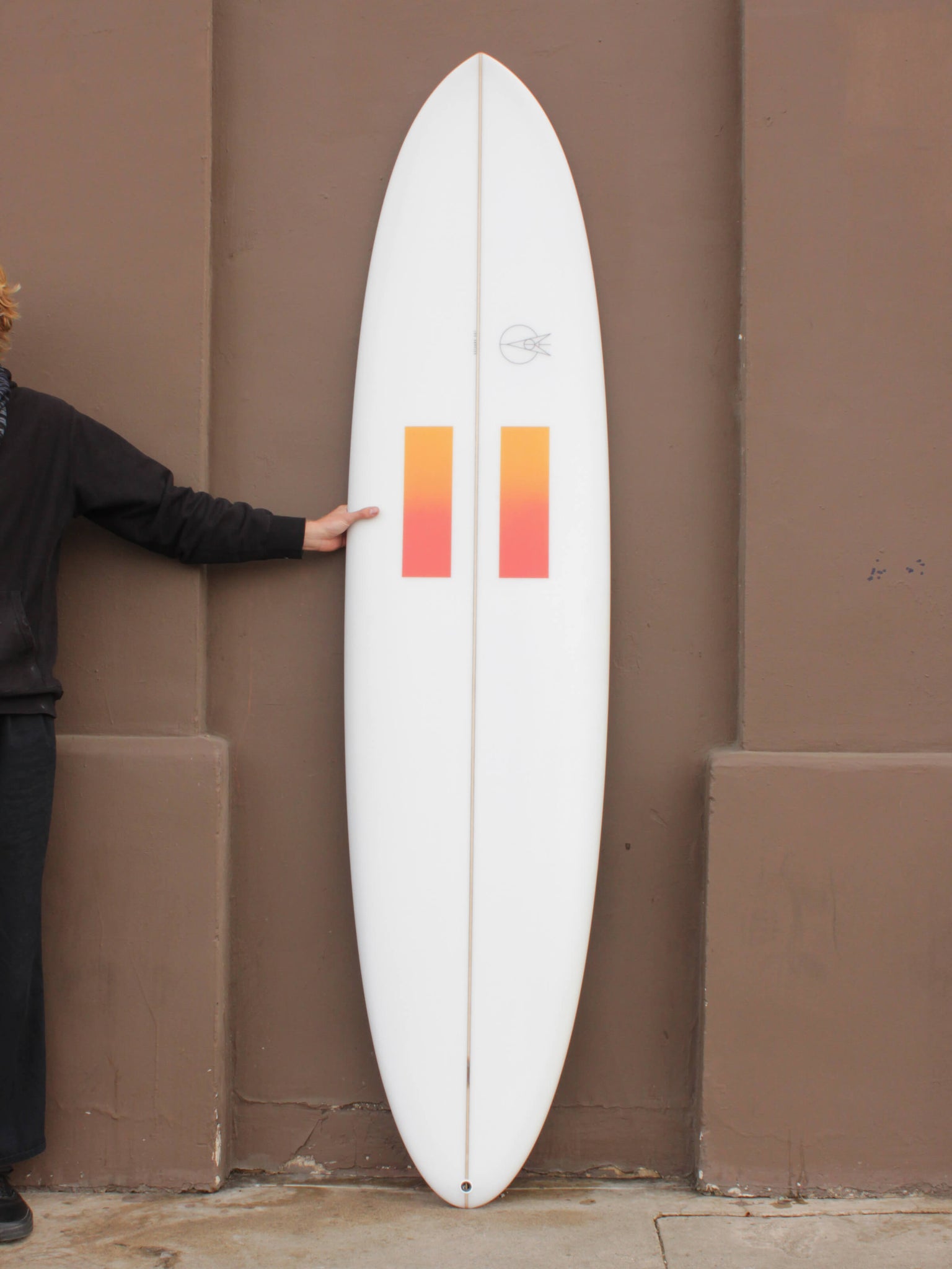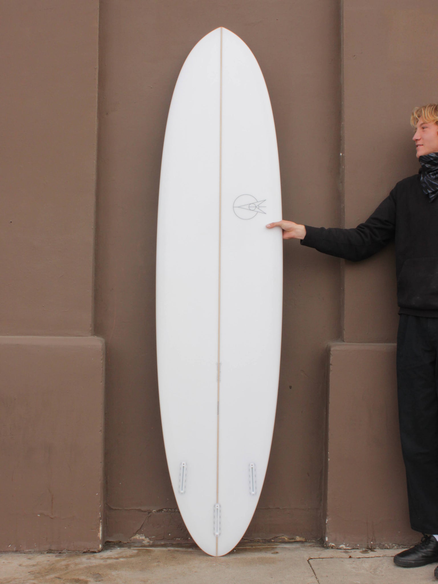 This shape is based on a super iconic design called "The Magic” from G&S. It has a rolled/belly in the front end which leads to V in the fin area. The rails are fairly rolled like a Frye and the tail is foiled. The learning curve is very easy on this design.