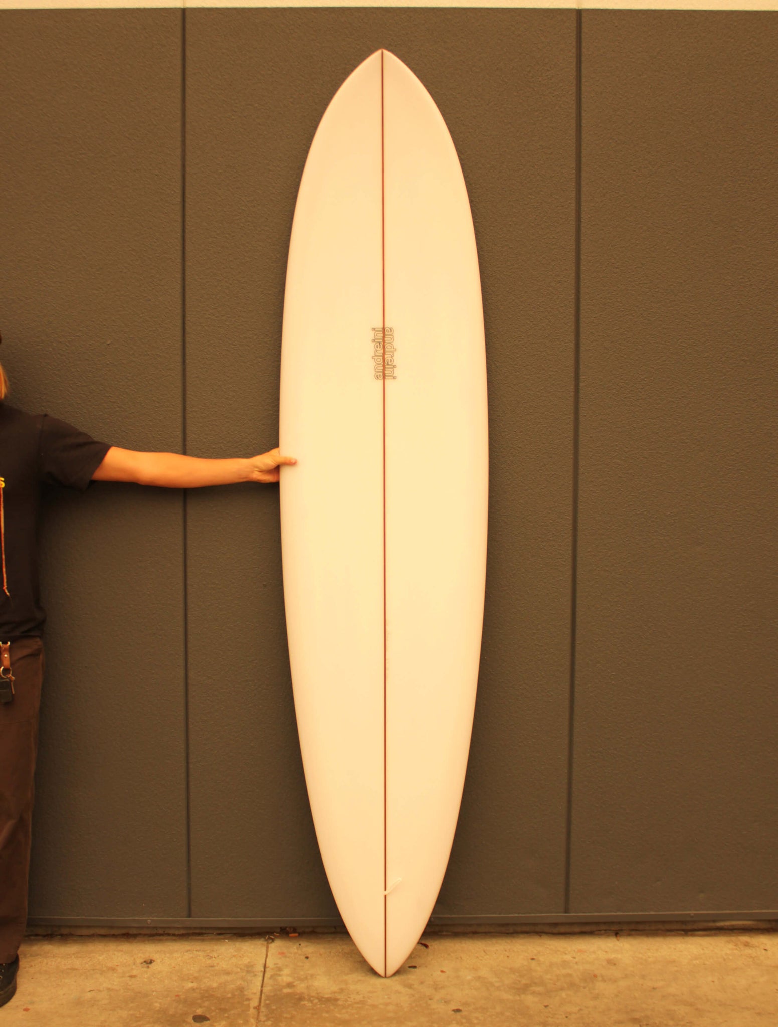 Inspired by Serena. A pintail version of the Vaquero. This board is the ultimate one board quiver—trims and glides in small waves, yet still rips huge turns in the bigger stuff.