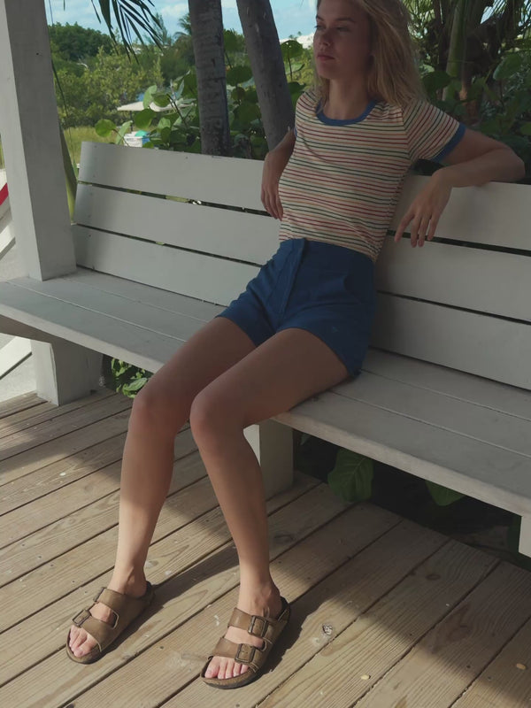 Based on your favorite vintage 80's shorts, but with flattering fit updates. These magic mushroom shorts are made from stretch denim and are incredibly comfortable for all-day warm weather wear.