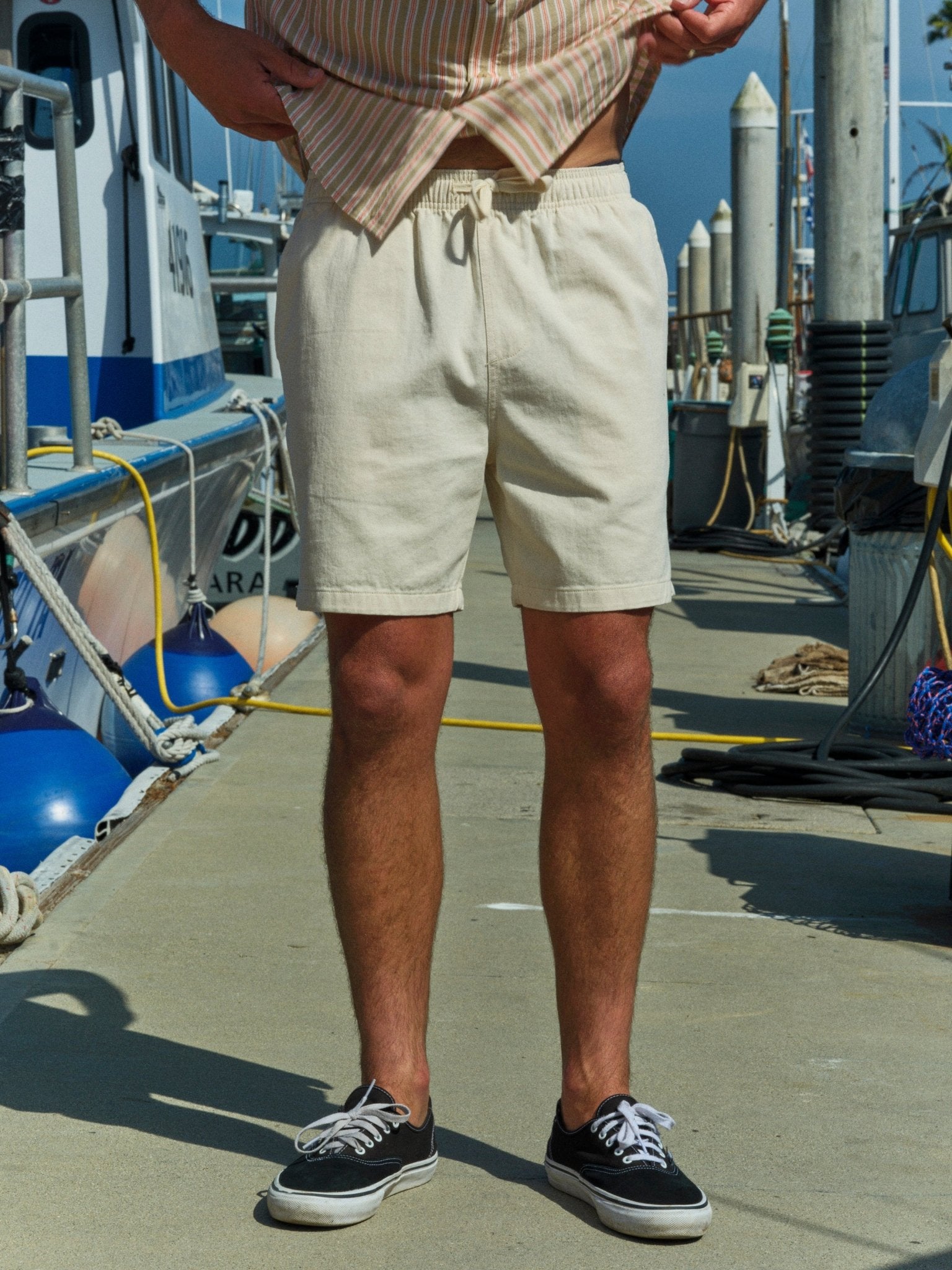 Slip into warmer days with these lightweight, easy-going shorts. Featuring an elastic waistband with adjustable drawcord and slant front pockets.